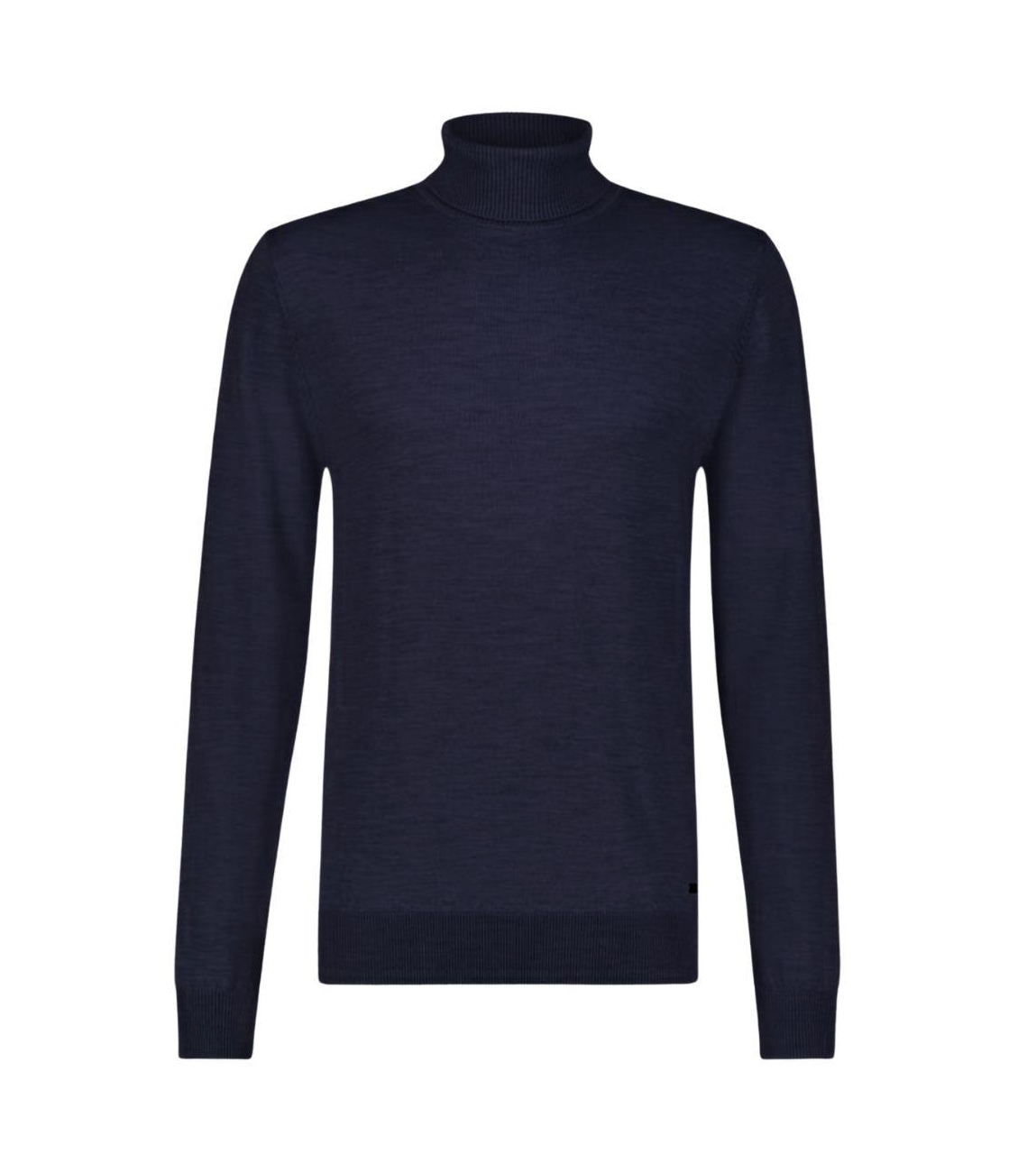 Born with Appetite pullover Niels BWA00005NI13. Dit rechtvallende model heeft een col en lange mouwen. Deze donkerblauwe pullover van Born with Appetite is uitgevoerd in een fijn breisel en is afgewerkt met ribgebreide boorden.