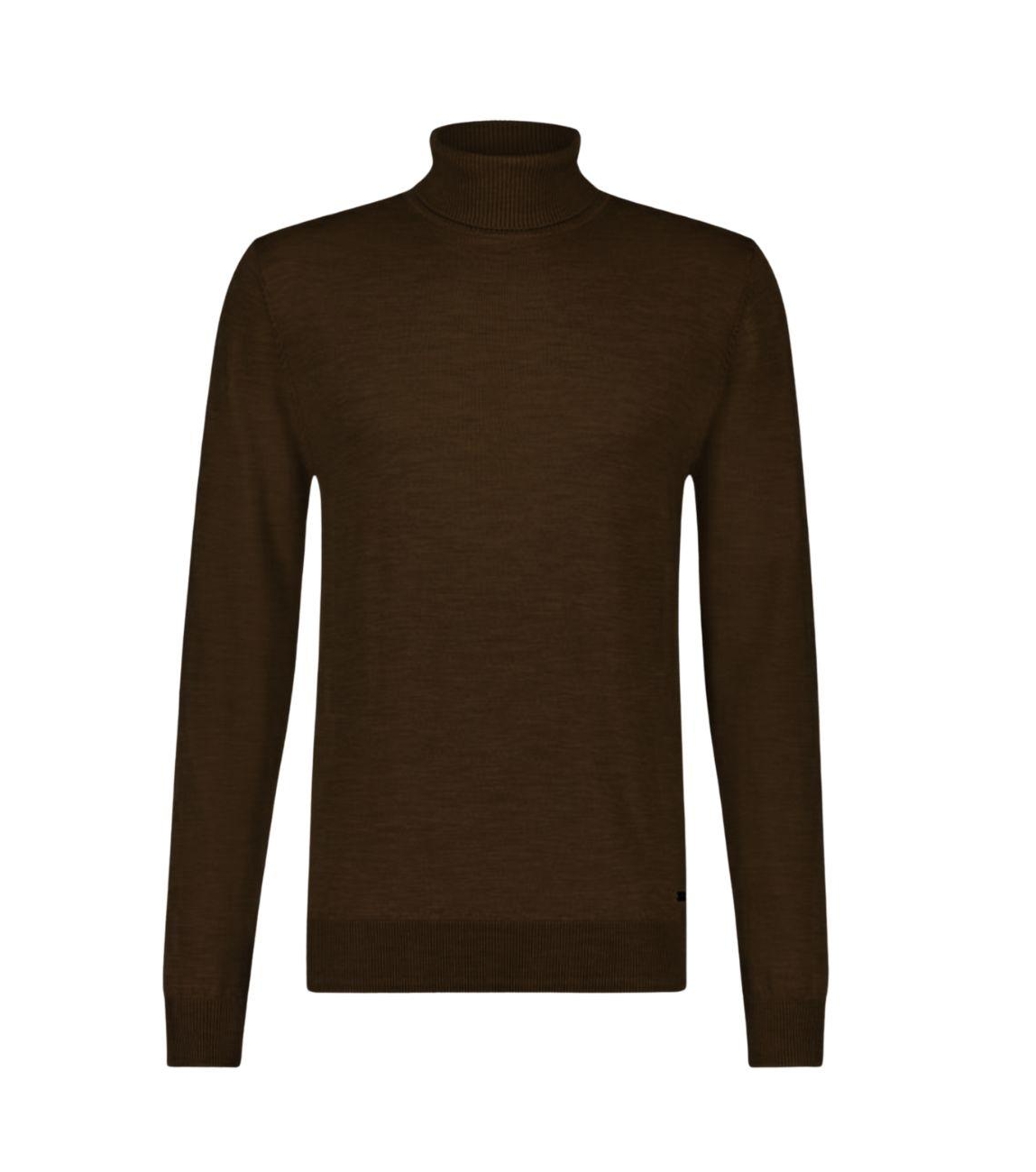 Born with Appetite pullover BWA0005NI13 2004. Dit rechtvallende model heeft een col en lange mouwen. Deze donkerbruine pullover van Born with Appetite is uitgevoerd in een fijn breisel en is afgewerkt met ribgebreide boorden.