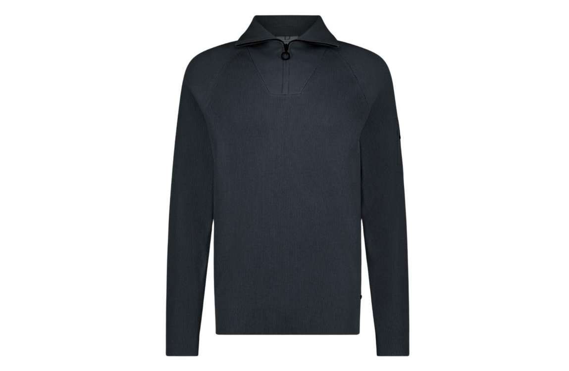 Born with Appetitie pullover BWA25305TI49 290. Dit rechtvallende model heeft een omgeslagen kraag en lange mouwen. Deze donkerblauwe pullover van Born with Appetite is uitgevoerd in ribgebreide stof.