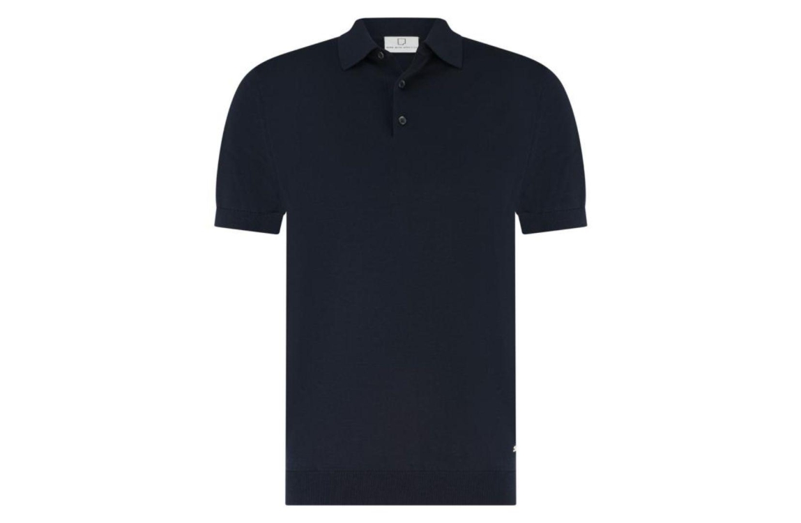 Born with Appetite Wolf Knitted Polo Ss 4001 Navy. Dit rechtvallende model is voorzien van een kraag en heeft korte mouwen. Deze donkerblauwe polo van Born with Appetite sluit door middel van knopen en is afgewerkt met boorden.