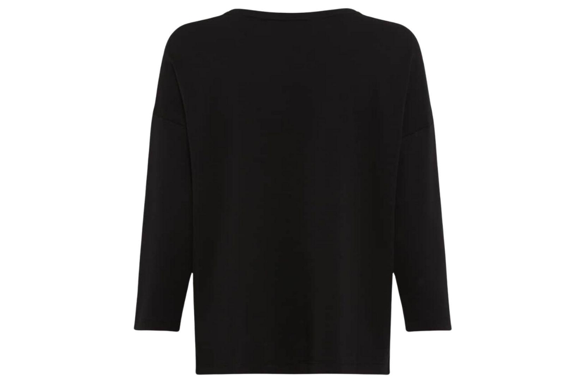 Brax shirt 37-5858 90650300 02. Dit rechtvallende model heeft een ronde halslijn en driekwart mouwen. Deze zwarte shirt van Brax is op het voorpand bewerkt met strass-steentjes in verticale lijnen.