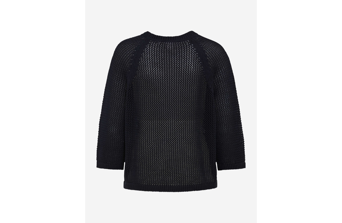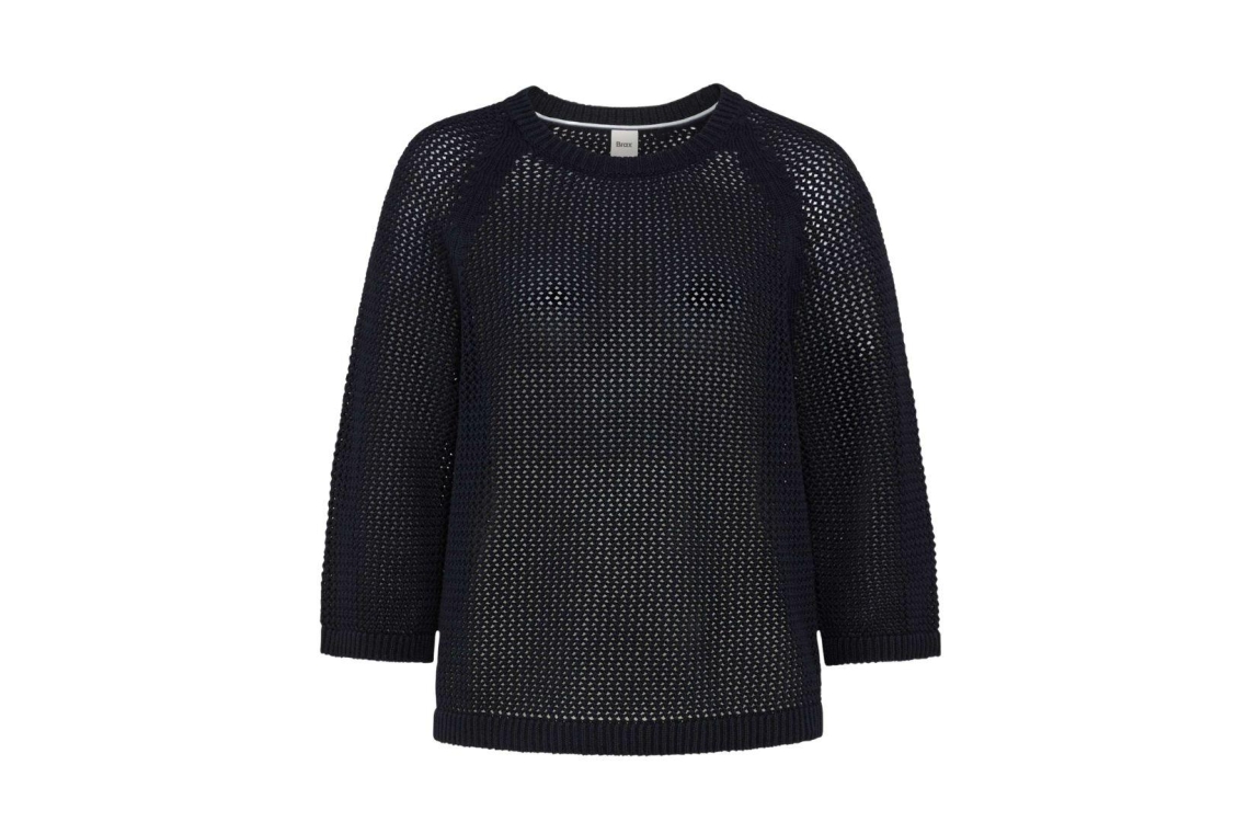 Brax pullover Nala 22 navy. Dit rechtvallend model is voorzien van een ronde hals en heeft driekwart mouwen. Deze donkerblauwe pullover van Brax is gehaakt uitgevoerd.