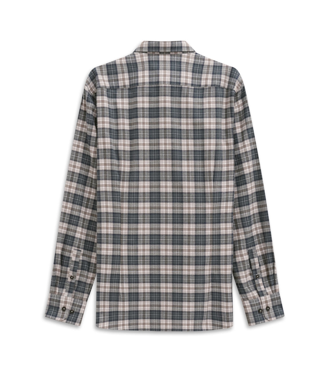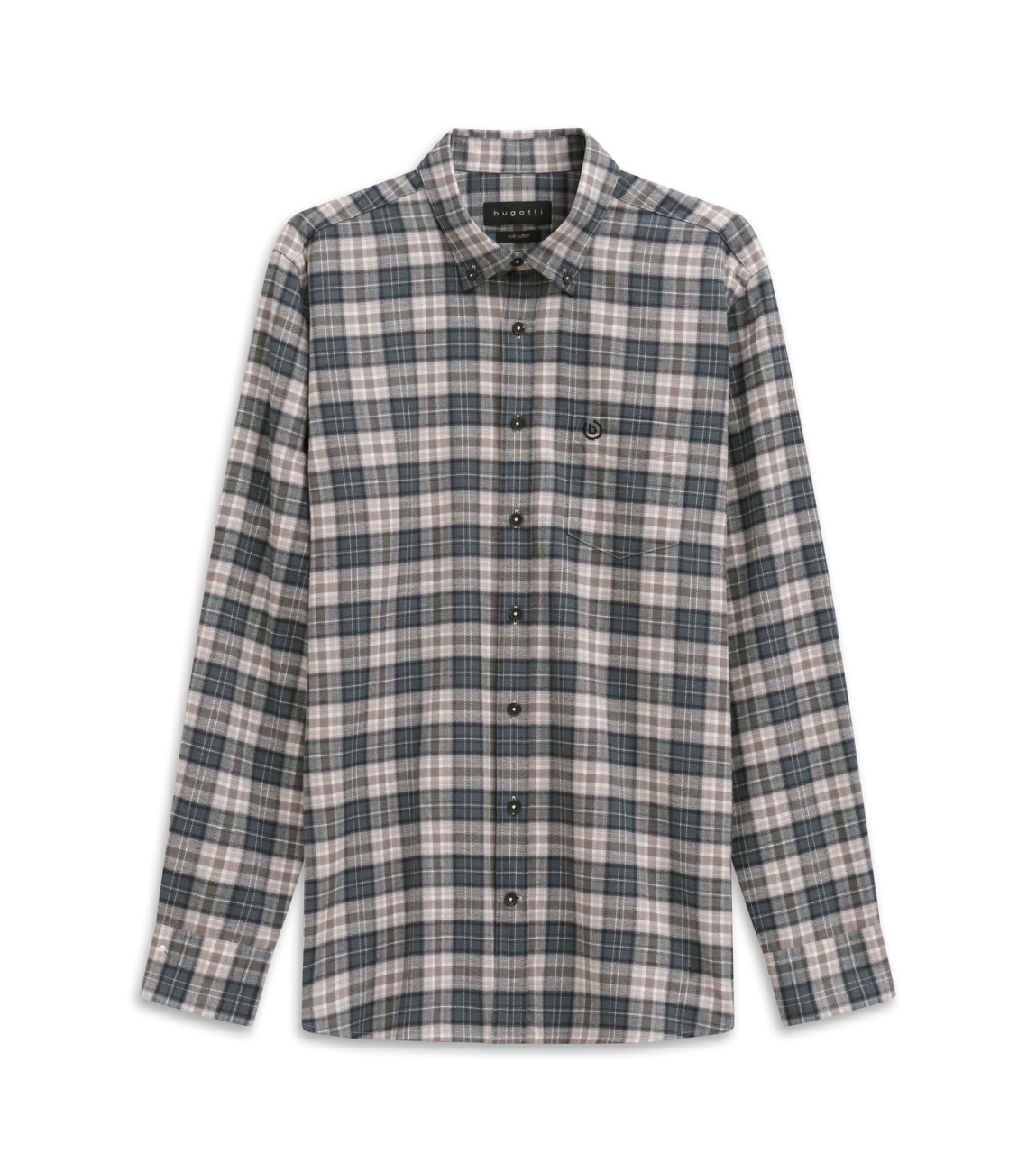 Bugatti overhemd 88304D 9350 150. Dit rechtvallende model heeft een kraag en lange mouwen. Deze donkergroene overhemd van Bugatti is all-over bewerkt met een ruitpatroon in verschillende kleuren. Het model is voorzien van een borstzakje en heeft afgewerkte manchetten.