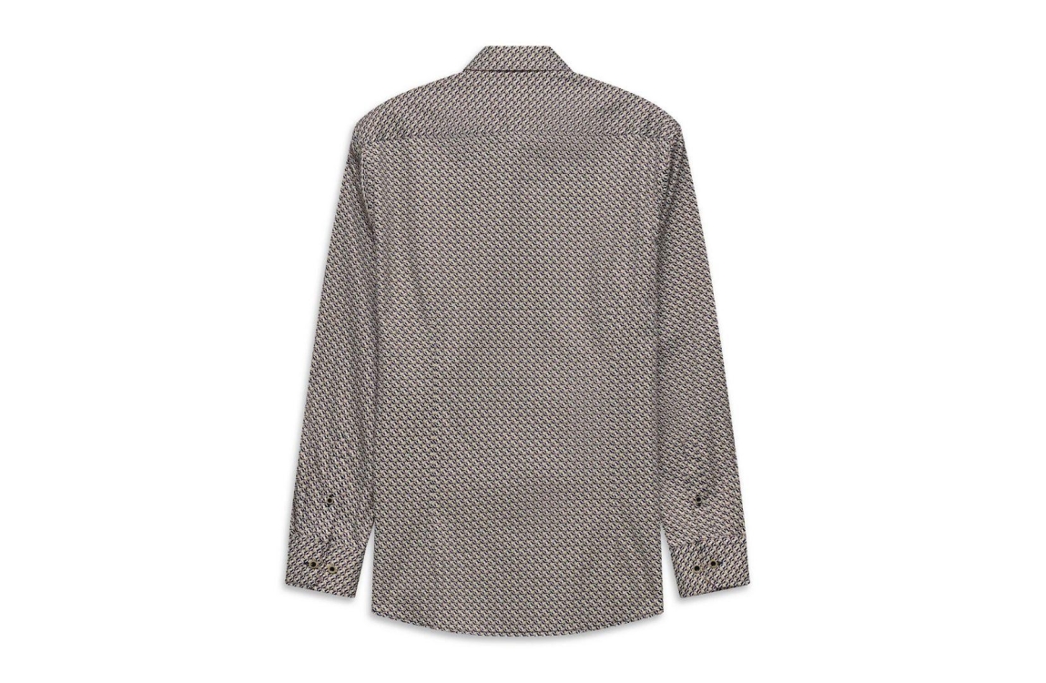 Bugatti overhemd 18511E 9750. Dit rechtvallend model is voorzien van een kraag en heeft lange mouwen. Deze meerkleurige overhemd van Bugatti sluit door middel van knopen en is all-over bewerkt met een grafische print.