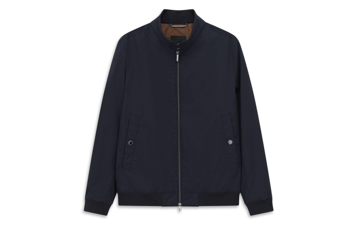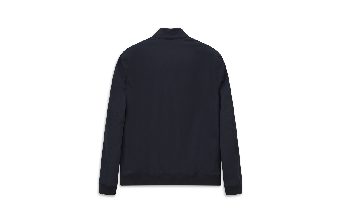 Bugatti HERREN BLOUSON 390. Dit rechtvallende model is voorzien van een opstaande kraag en heeft lange mouwen. Deze tussenjas van Bugatti sluit door middel van een rits en beschikt over twee steekzakken met knoop. Dit model is afgewerkt met boorden.
