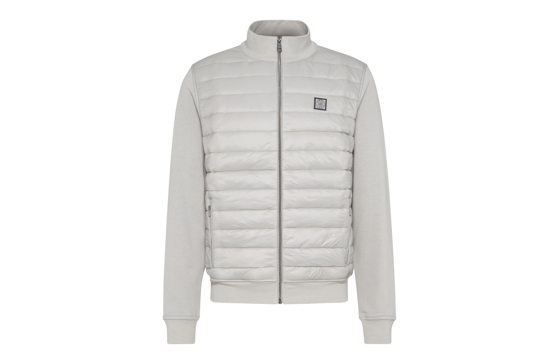 Bugatti vest 35071/950. Dit recht vallende model is voorzien van een opstaande kraag en sluit door middel van een rits. Deze beige vest van Bugatti beschikt over twee ritszakken op het gewatteerde voorpand, achterpand en de mouwen zijn van sweater stof gemaakt.