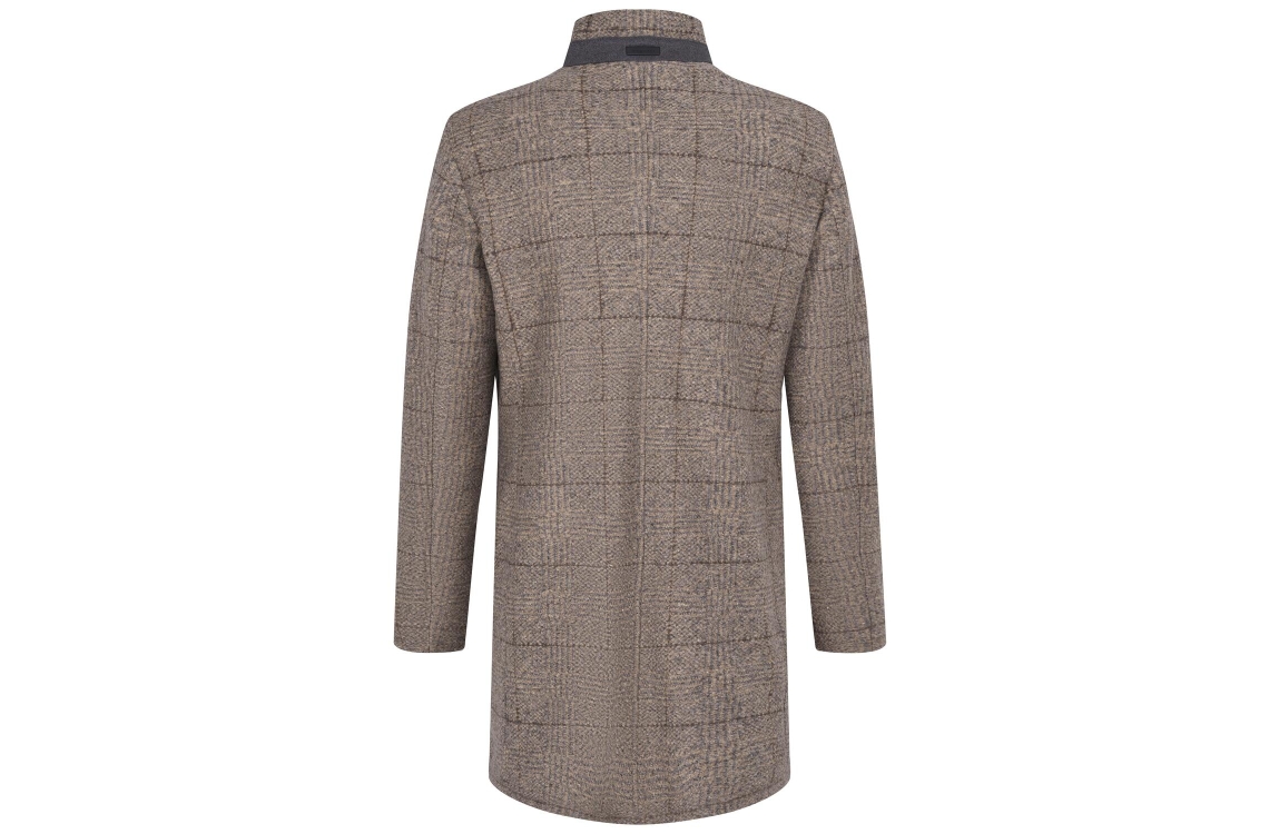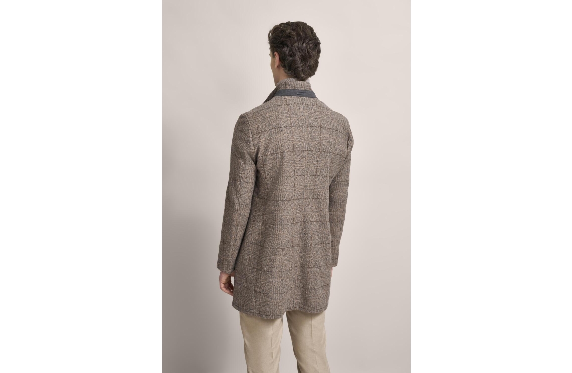 Bugatti jas 628533 64078 50. Dit rechtvallend model heeft een opstaande kraag en lange mouwen. Deze bruine jas van Bugatti sluit aan de voorzijde door middel van knopen en beschikt over twee steekzakken. Dit model is all-over bewerkt met een ruitpatroon en is voorzien van voering.
