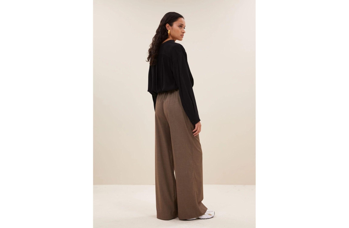 By-Bar Amsterdam Benji melange pants Biscuit melee. Dit wide leg model sluit door middel van een elastische boord en beschikt over twee steekzakken aan de voorzijde. Deze bruine pantalon van By-Bar is aan de boven- voorzijde afgewerkt met plooi details.