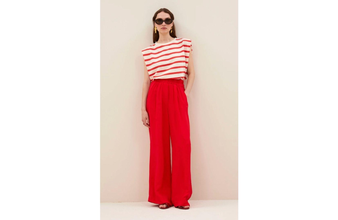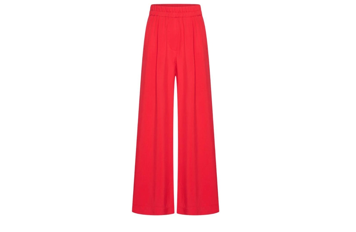 By-Bar Amsterdam benji satin stripe pants 26218022. Dit wide leg model sluit door middel van een elastische boord en beschikt over twee steekzakken aan de voorzijde. Deze rood gestreepte broek van By-Bar is uitgevoerd in een glanzende stof kwaliteit.
