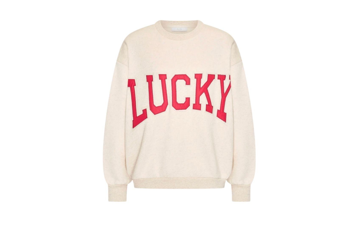 By-Bar Amsterdam bibi lucky patchwork sweater 26218903. Dit wijdvallend model heeft een ronde hals en lange mouwen met verlaagde schoudernaden. Deze beige sweater van By-Bar Amsterdam is op het voorpand bewerkt met een tekstopdruk 'LUCKY' en is afgewerkt met boorden.