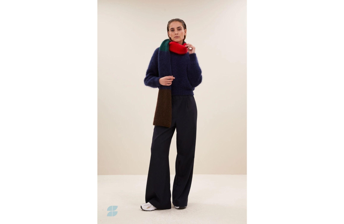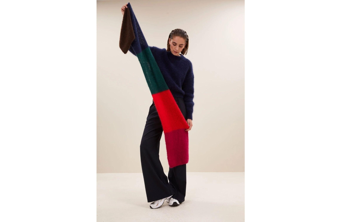 By-Bar Amsterdam Leah striped scarf 968 multi stripe. Dit rechthoekig blauw/groen/rode model is heerlijk zacht en comfortabel.