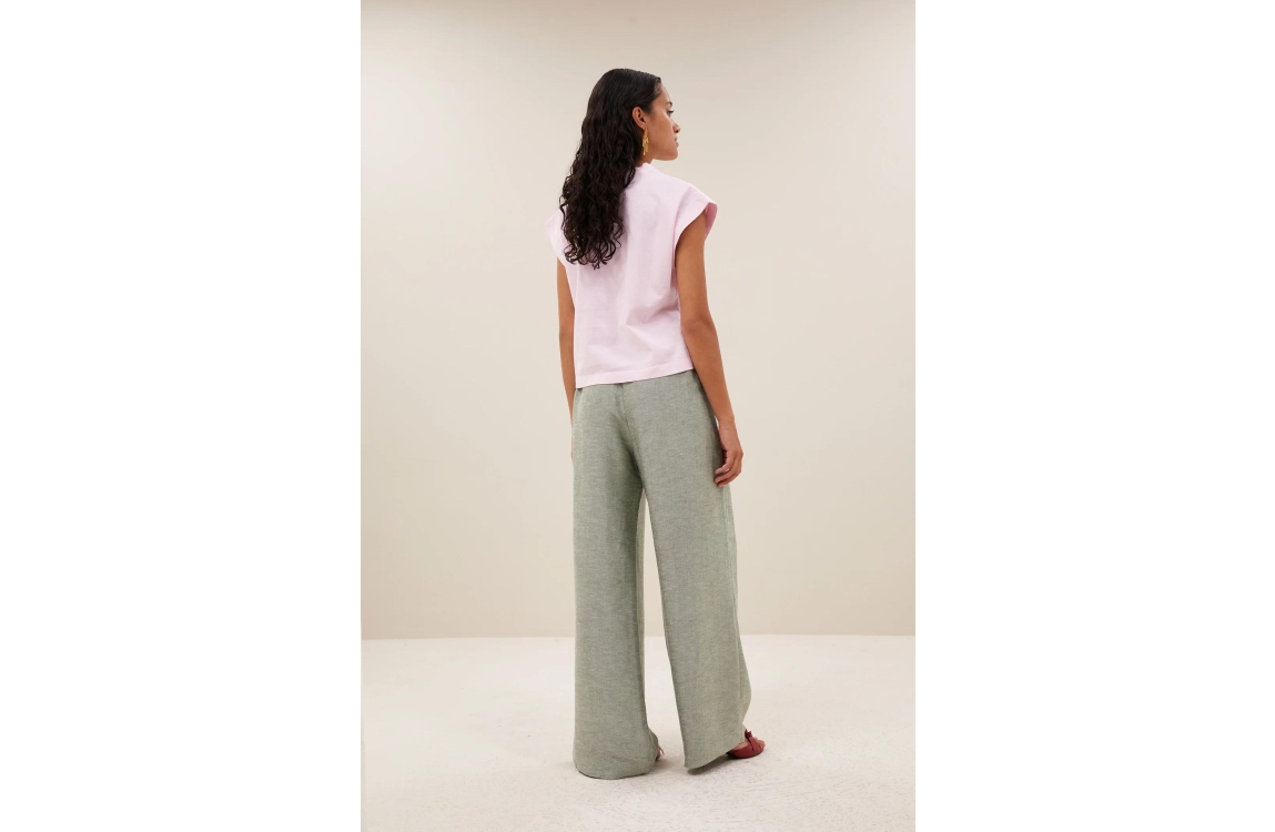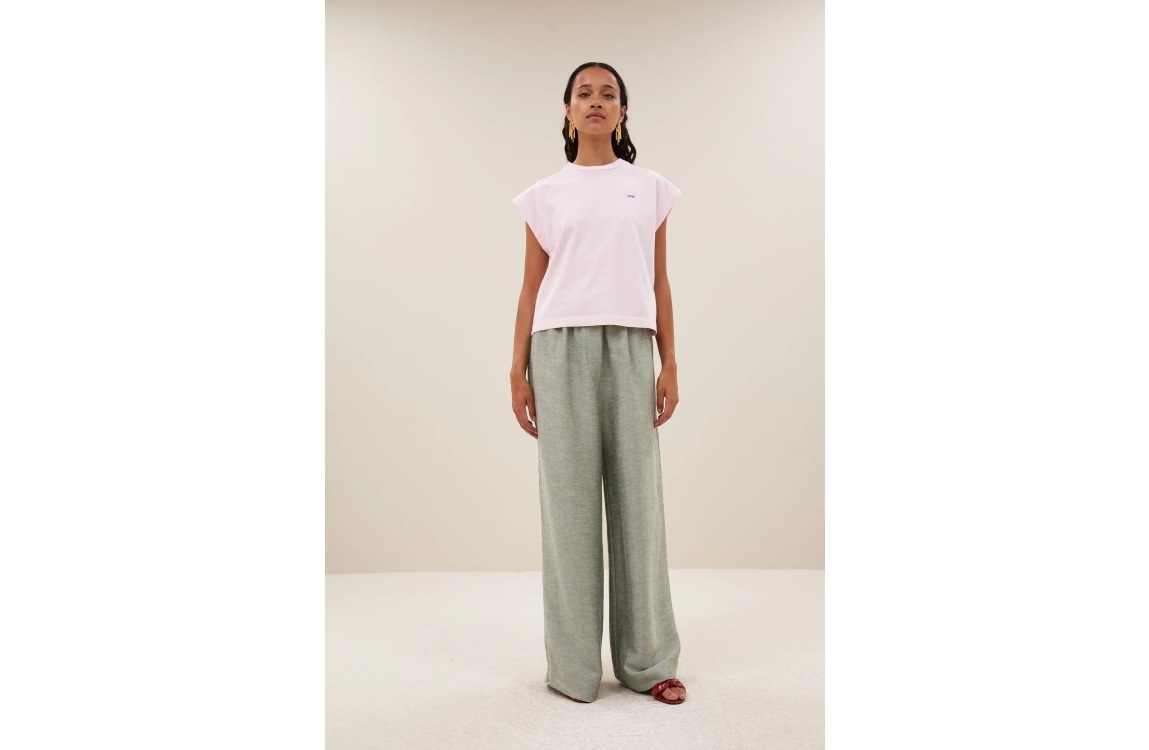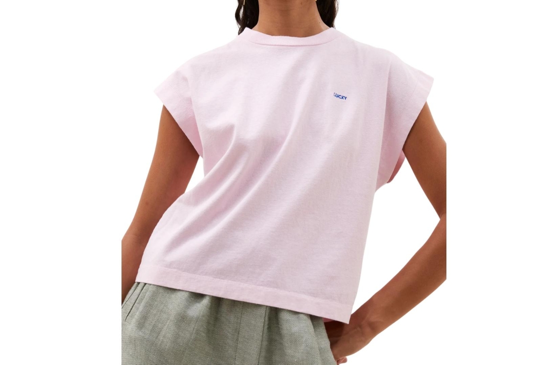 By-Bar Amsterdam mason top 26211003. Dit rechtvallend model heeft een ronde hals en korte kapmouwtjes. Deze roze top van By-Bar is voorzien van een blauw 'lucky' detail op de voorzijde.