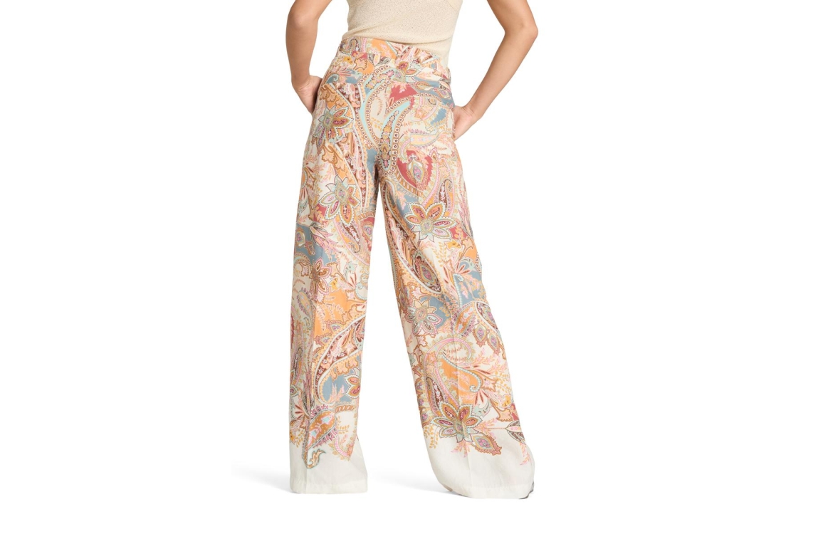 Cambio broek Adrienne 8729-0414-03 802. Dit wijdvallende model sluit door middel van een knoop- en ritssluiting met trekkoord. Deze multi-colour broek van Cambio is all-over bewerkt met een grafische print en is voorzien van twee steekzakken aan de voor- en achterzijde. Het model is afgewerkt met ceintuurlussen en een plooidetail over de lengte van de been.
