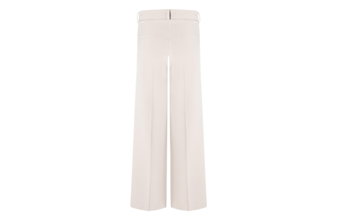 Cambio broek Ameilie 6052-0246-02. Dit straight fit model sluit door middel van schuifknopen met ritssluiting en is voorzien van ceintuurlussen. Deze off-white broek van Cambio is gedetailleerd met een plooi over de lengte.