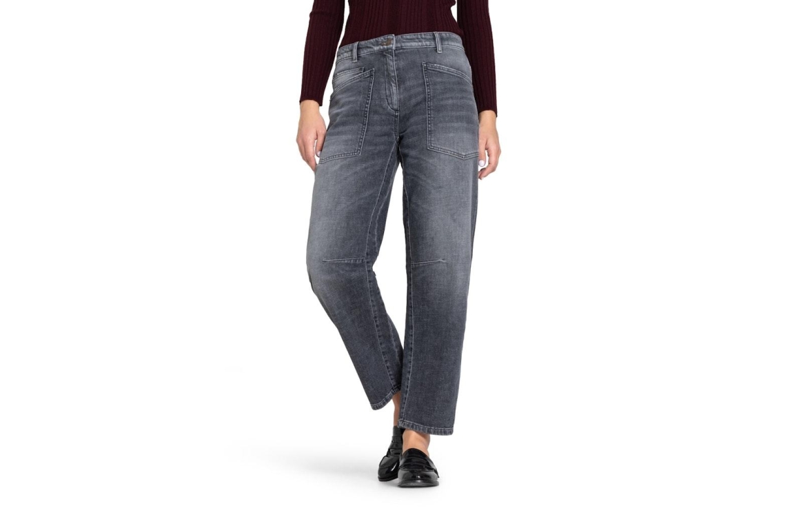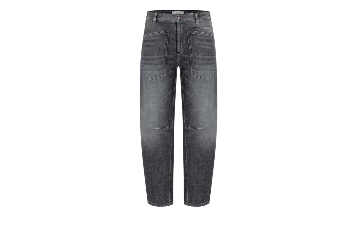 Cambio Ocean 9232-0382-09 jeans. Dit cropped model sluit door middel van een knoop en rits. Deze 'washed' grijze jeans van Cambio is uitgevoerd met verschillende zakken en riemlusjes. Deze jeans bevat lichte stretch.