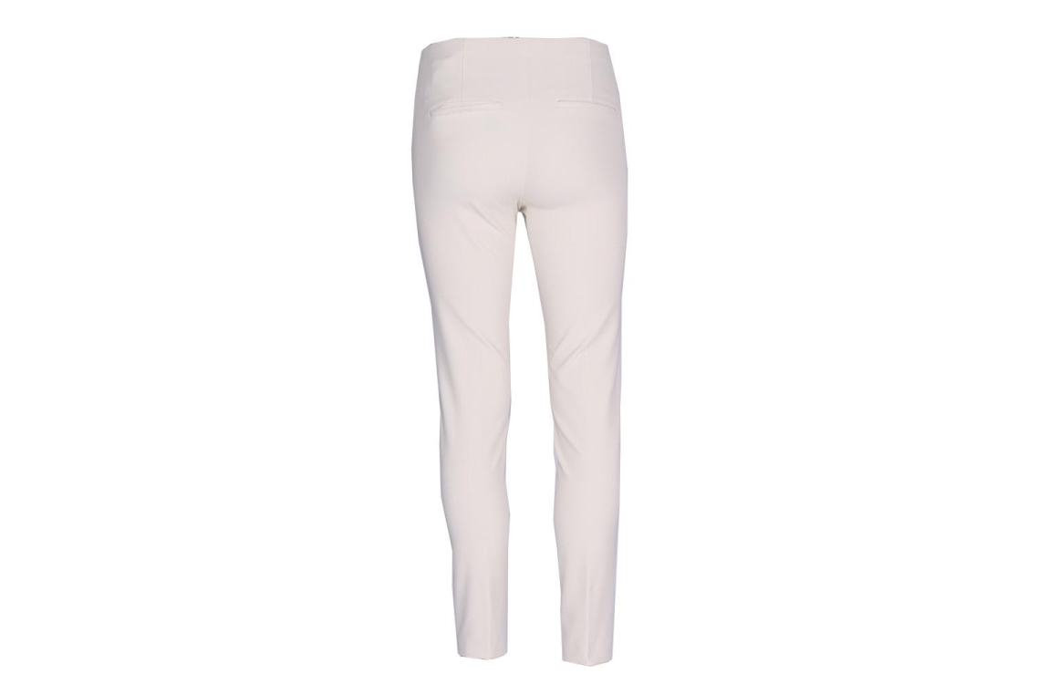 Cambio broek Ros 6111-0202-00. Dit aangesloten model sluit door middel van een elastische band met knoop- en ritssluiting. Deze Petticoat-ecru pantalon van Cambio is voorzien van twee fake paspelzakken op het achterpand en is afgewerkt met een decoratieve naad op de voorzijde.