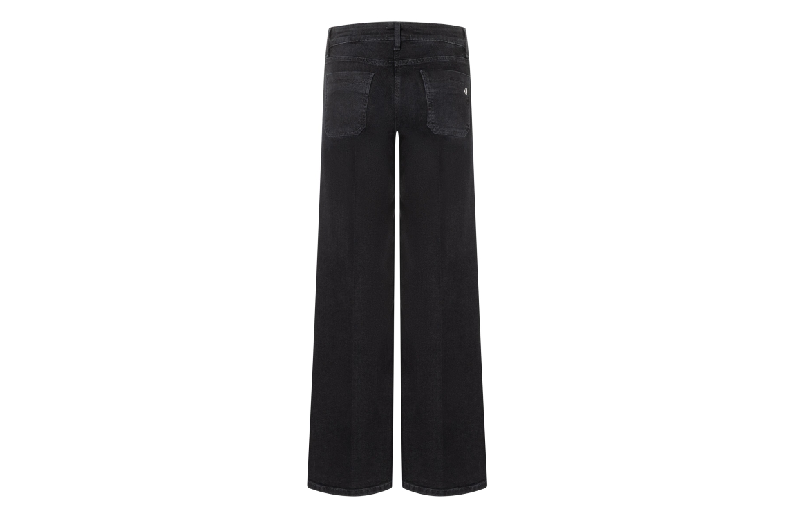 Cambio broek Tess 9250-0096-15 5014. Dit wide leg model sluit door middel een knoop- en ritssluiting en is voorzien van ceintuurlussen. Deze zwarte broek van Cambio is voorzien van twee steekzakken aan de voor- en achterzijde.
