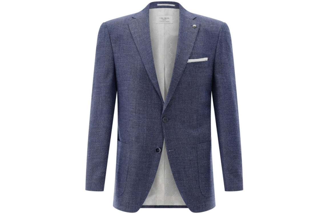 Carl Gross sakko/jacket cg sander-g sv. Dit regular fit model heeft een v-hals en lange mouwen. Dit blauwe colbert van Carl Gross heeft een geweven structuur en knoop met logo boven aan het colbert zitten, verder heeft het cobert steekzakken die van boven te gebruiken zijn.