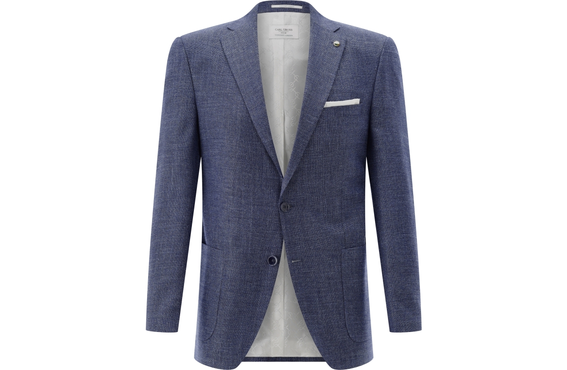 Carl Gross colbert Sander. Dit slim fit model heeft een reverskraag en lange mouwen. Deze blauwe colbert van Carl Gross heeft 2 steekzakken, een borstzak en 3 binnenzakken, heeft een gewoven structuur en sluit door knopen.