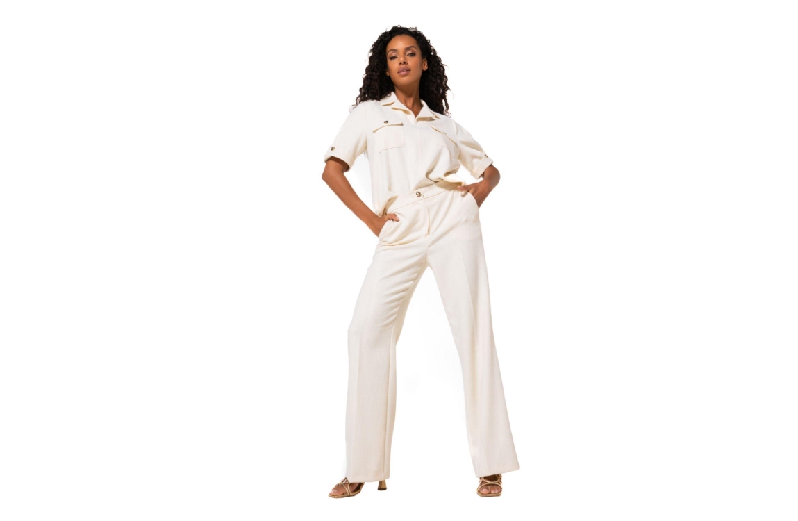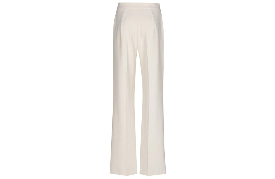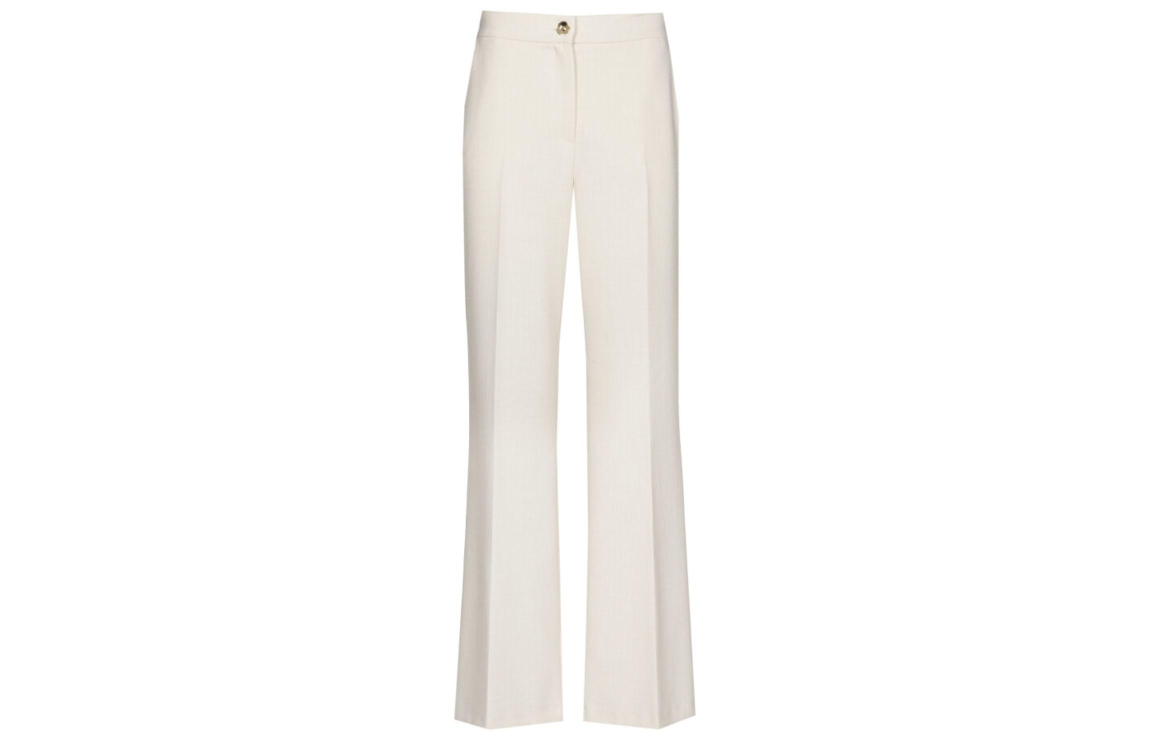 Caroline Biss Broek Natural. Dit rechtvallende model sluit aan de bovenzijde door middel van een rits en knoop. Deze off-white broek van Caroline Biss heeft twee steekzakken in de zijnaad. Dit model is afgewerkt met ingestreken plooien.