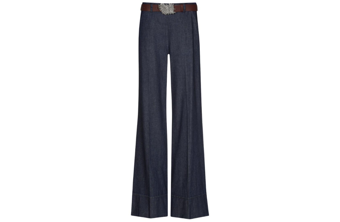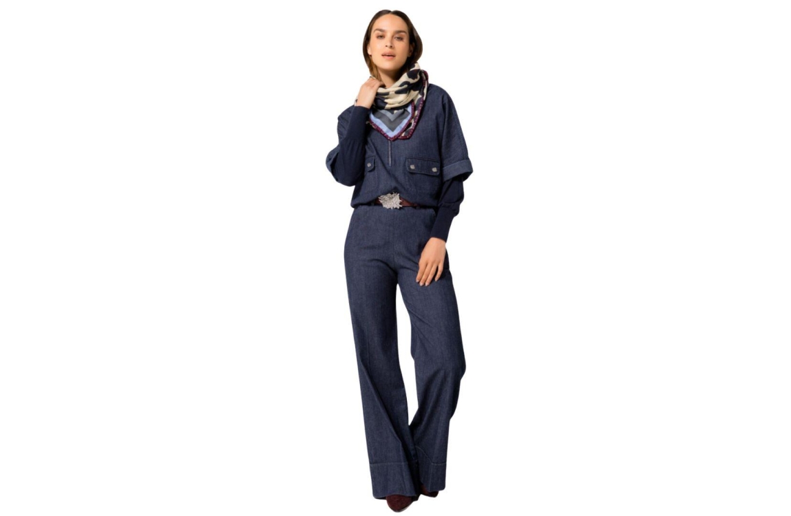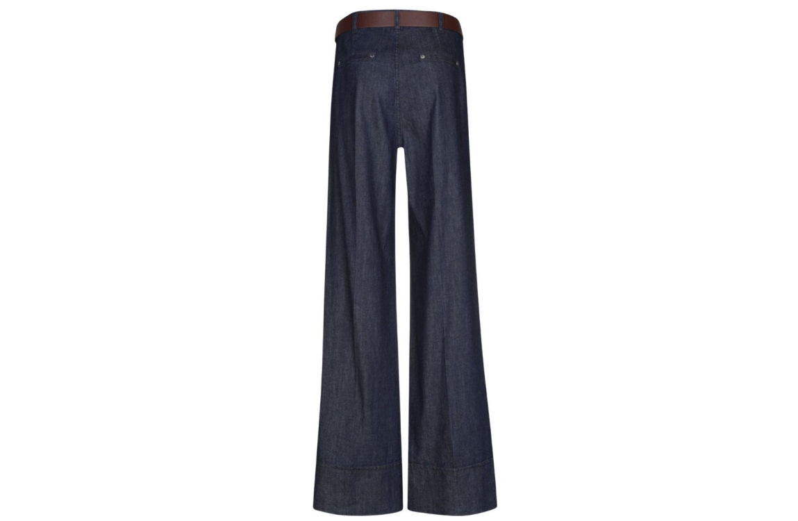 Caroline Biss Jeans 4557/23. Dit wide leg model sluit door middel van een (blinde) rits in de zijdnaad en is voorzien van een burguny riem met gespdetail. Deze donkere denim broek van Caroline Biss beschikt over twee steekzakken aan de voorzijde en twee paspelzakken aan de achterzijde. Het model is gedetailleerd met een ingestreken plooi op de been en heeft een hoge zoomboord.