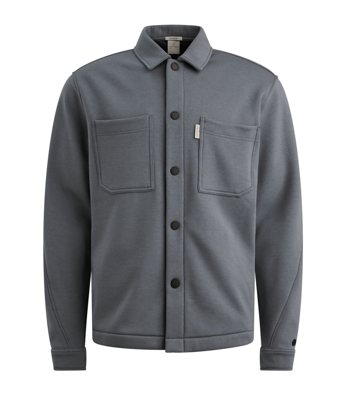 Cast Iron vesy CSW2511460. Dit rechtvallend model is voorzien van een kraag en heeft lange mouwen. Deze blauw/grijze vest van Cast Iron sluit door middel van knopen en beschikt over twee borst- en steekzakken.