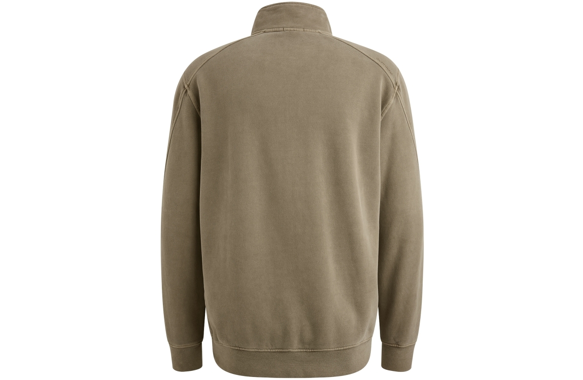 Cast iron pullover half zip CSW2508443. Dit rechtvallende model heeft turtle kraag en sluit door een half zip. Deze bruine pullover van Cast Iron heeft elastische boorden en een logo op de borst