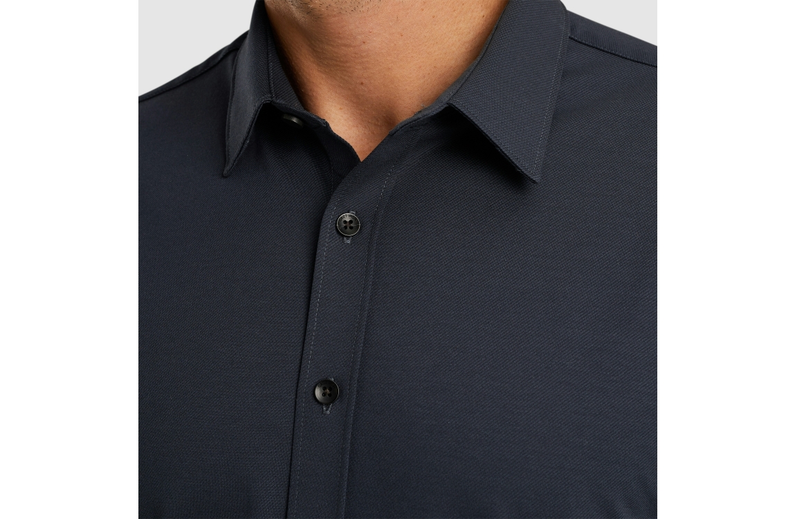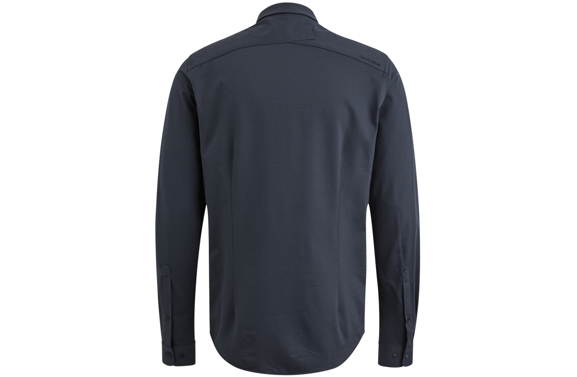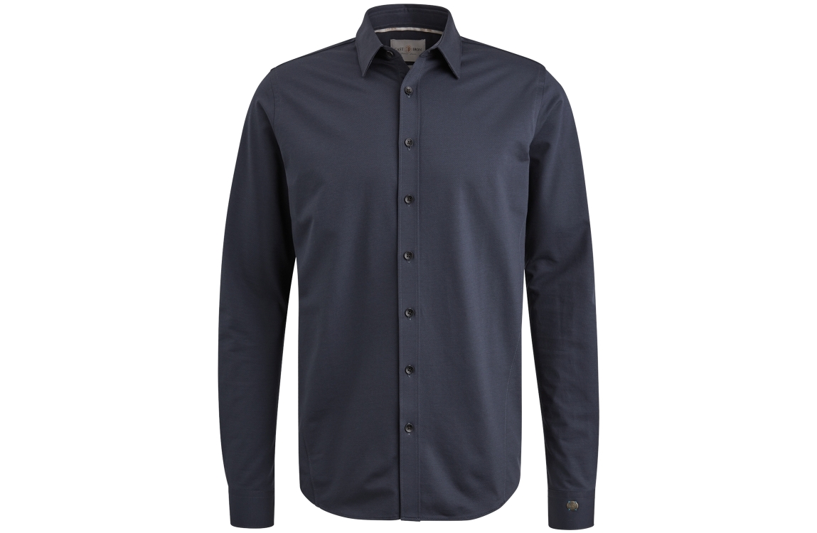 Cast Iron overhemd CSI2502200. Dit slim-fit model is voorzien van een kraag en heeft lange mouwen. Dit donker blauwe overhemd van Cast Iron sluit door middel van knopen en is geproduceerd met soft stretch