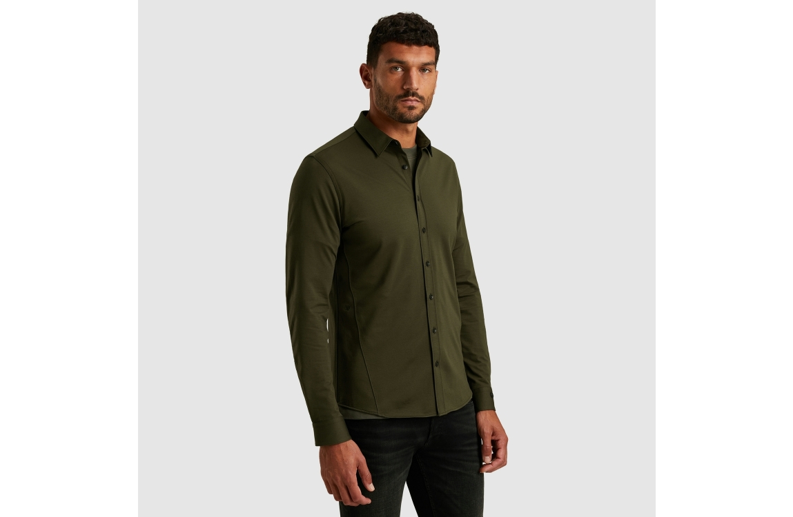 Cast Iron shirt CSI2510250. Dit slim fit model is voorzien van een kraag en heeft lange mouwen. Deze groene shirt van Cast Iron sluit door middel van knopen en is uitgevoerd in een zachte stretch kwaliteit.