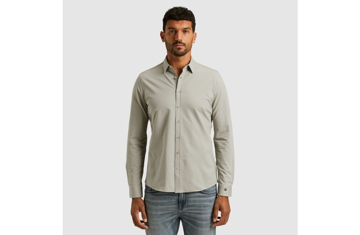 Cast Iron shirt CSI2510250. Dit slim fit model is voorzien van een kraag en heeft lange mouwen. Deze grijze shirt van Cast Iron sluit door middel van knopen en is uitgevoerd in een zachte stretch kwaliteit.