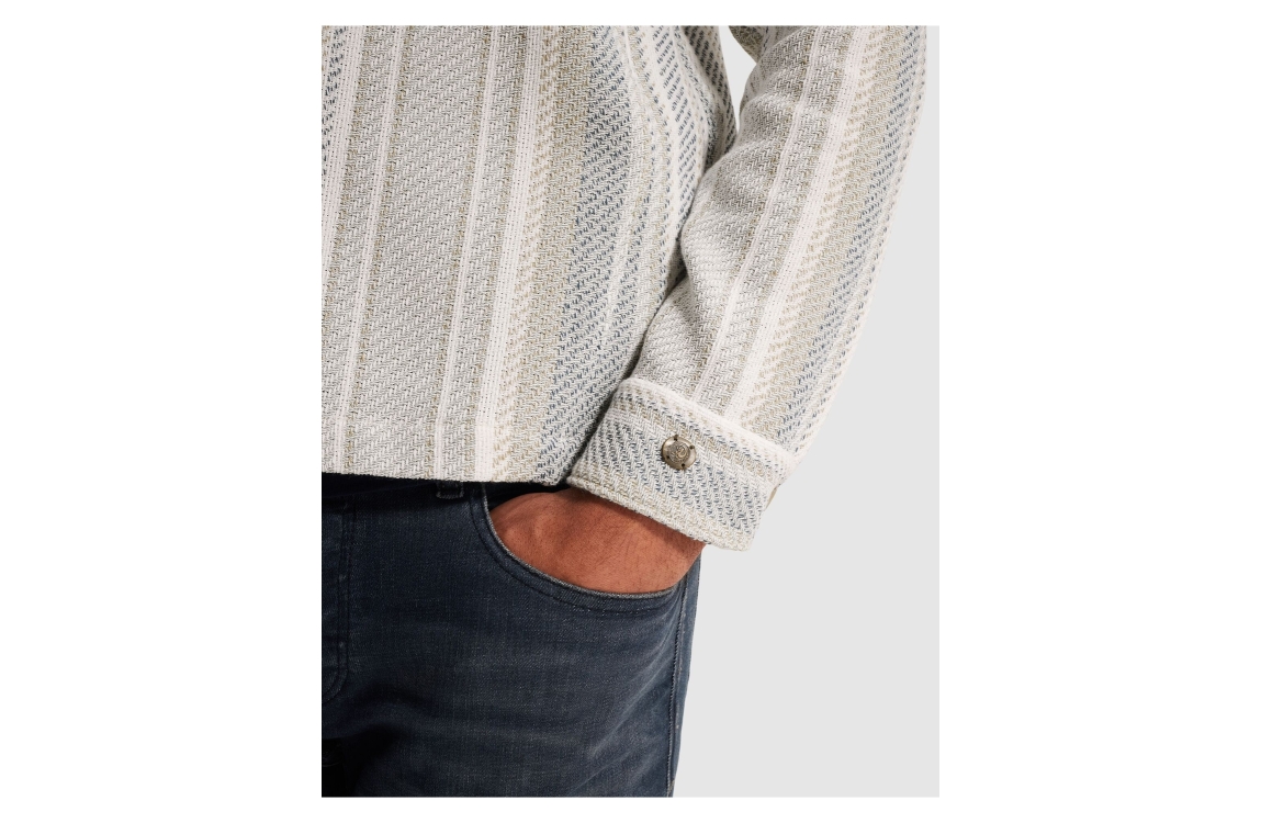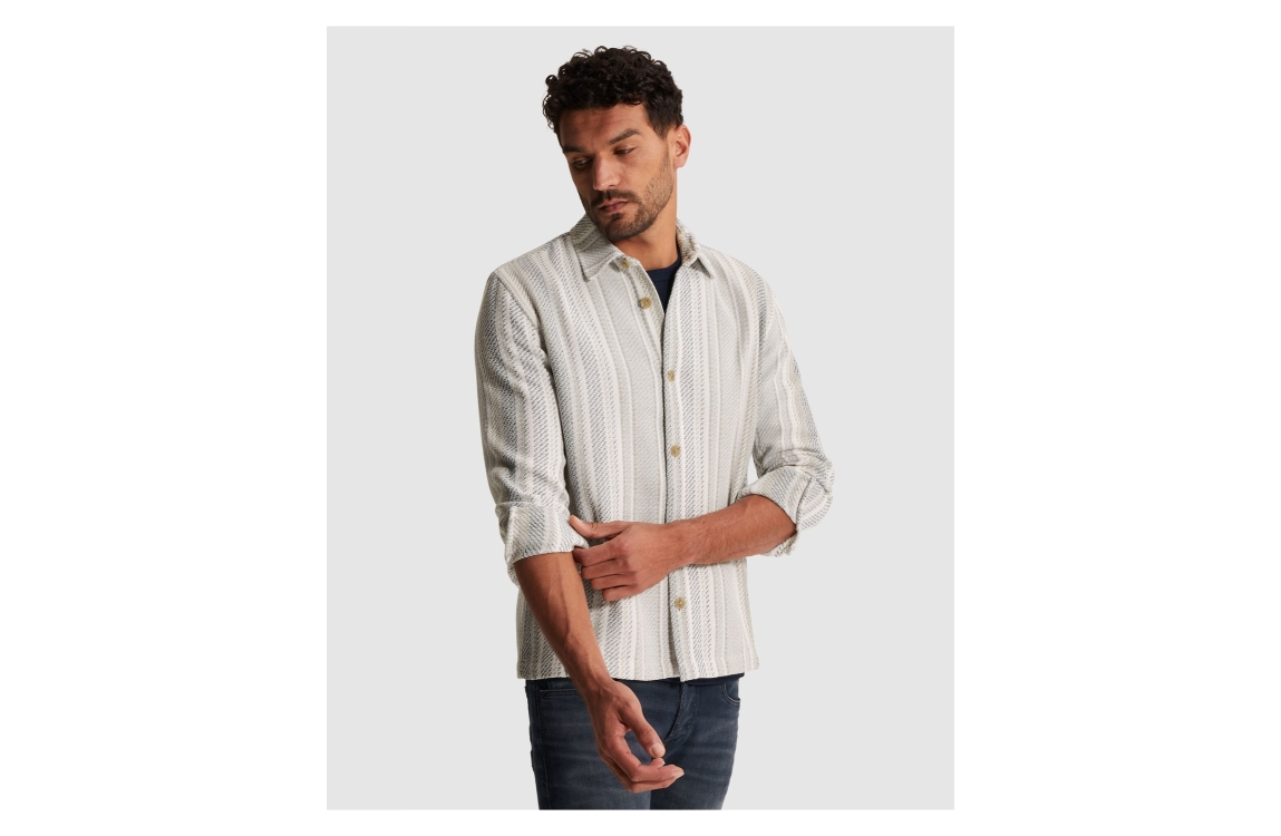 Cast Iron overhemd CSI2603225 7178. Dit rechtvallende model heeft een kraag en lange mouwen. Deze witte overhemd van Cast Iron sluit aan de voorzijde door middel van knopen en is all-over bewerkt met een streepprint in verschillende kleuren.