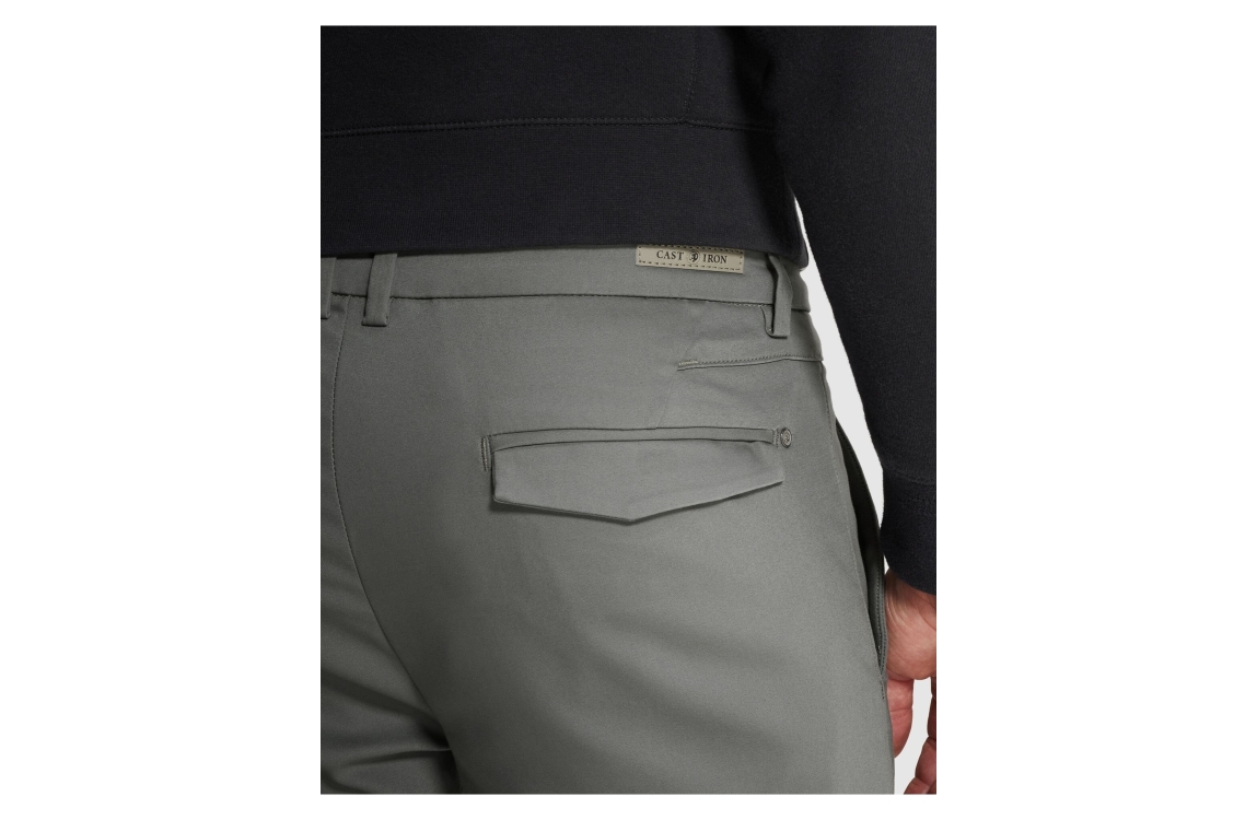 Cast Iron RISER chino CTR2602600-9046. Dit rechtvallend model sluit door middel van een knoop en rits. Deze grijze chino van Cast Iron is voorzien van verschillende broekzakken en afgewerkt met riemlusjes.