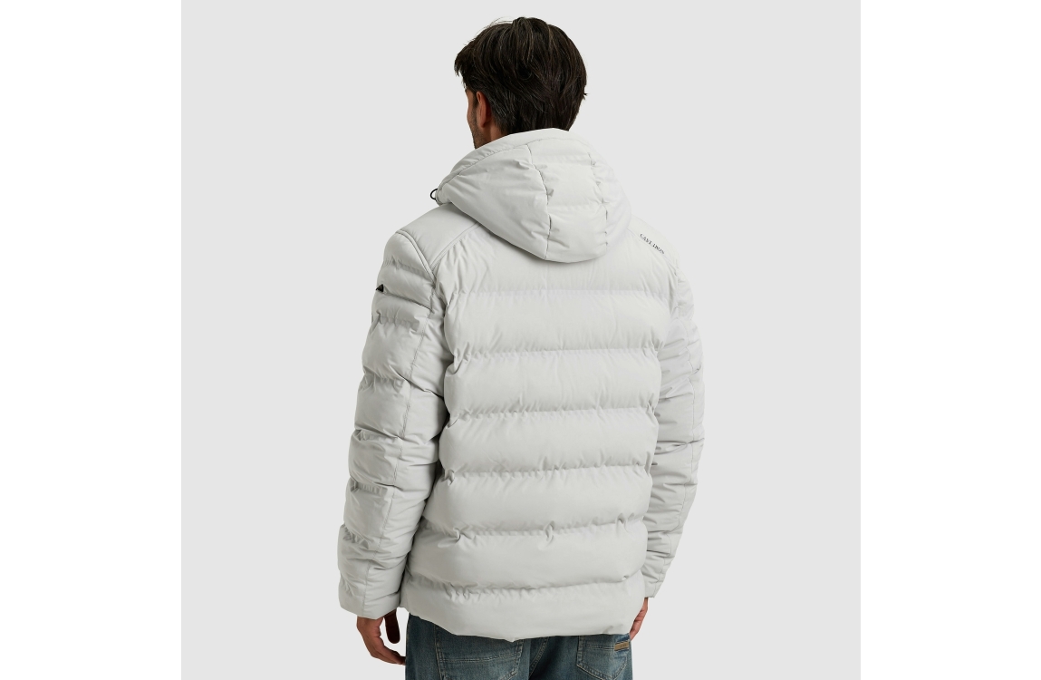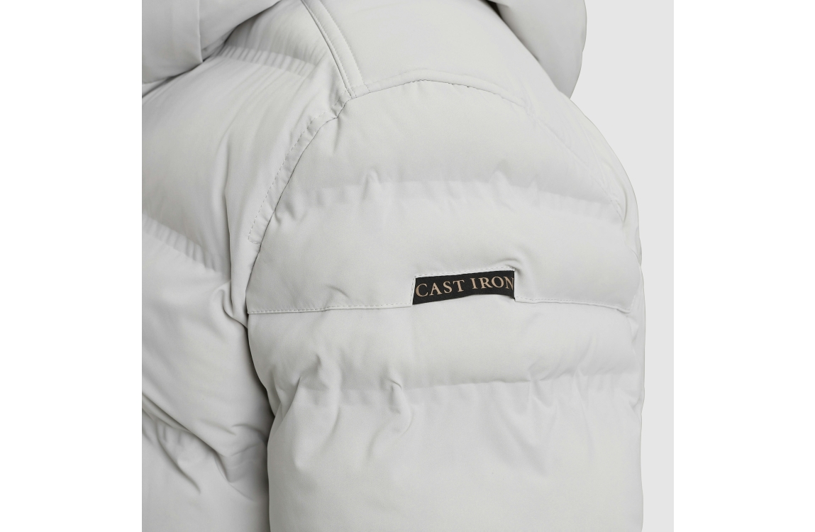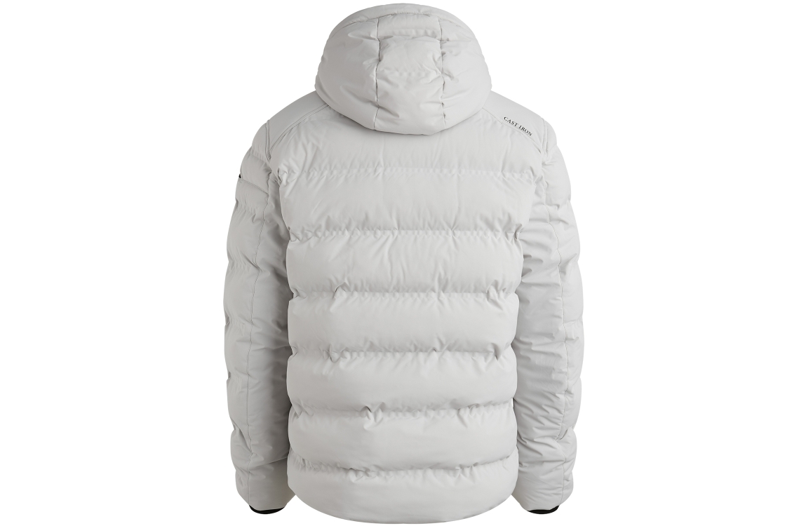 Cast Iron jas CJA2509145. Dit rechtvallende model heeft een opstaande kraag met afneembare capuchon en lange mouwen. Deze vapor blauwe jas van Cast Iron sluit aan de voorzijde door middel van een rits en is voorzien van twee knoopzakken en een ritszak. Het model is op de linker- mouw en schouder gedetailleerd met het merkembleem.