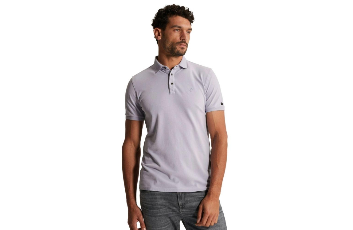 Cast Iron polo CPSS2602850 4270. Dit rechtvallende model heeft een kraag met knoopsluitingen en korte mouwen. Deze paarse polo van Cast Iron is op de linkerborst bewerkt met het merkembleem en heeft afgewerkte boorden.