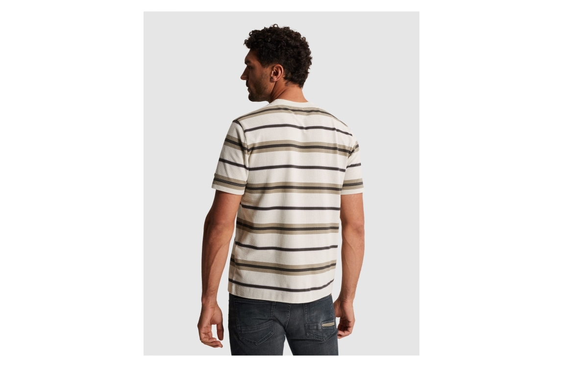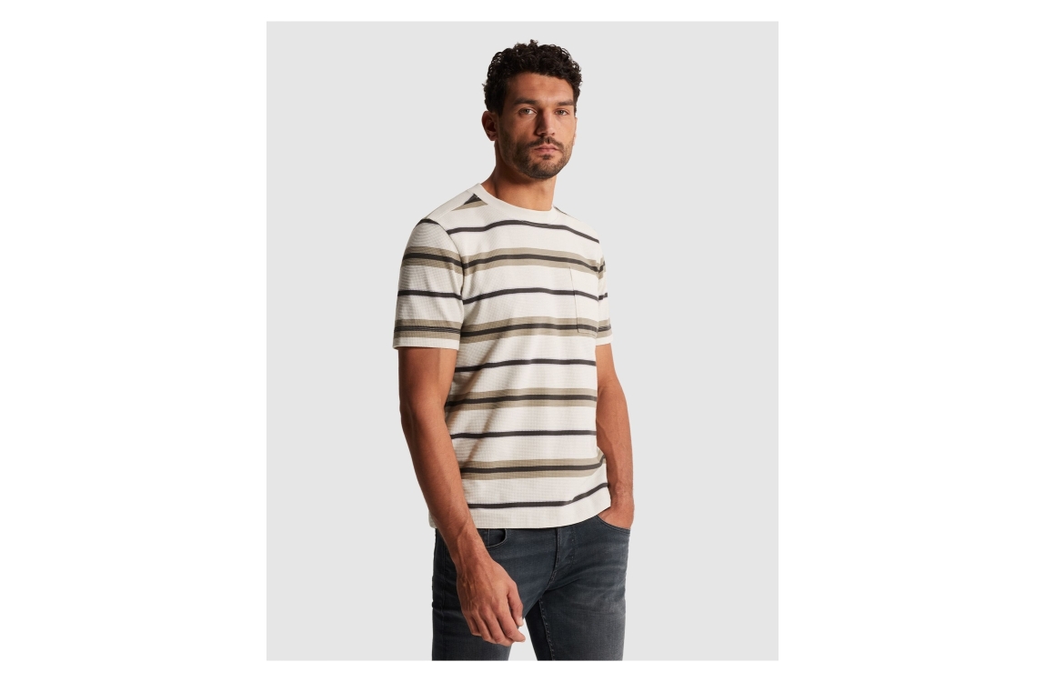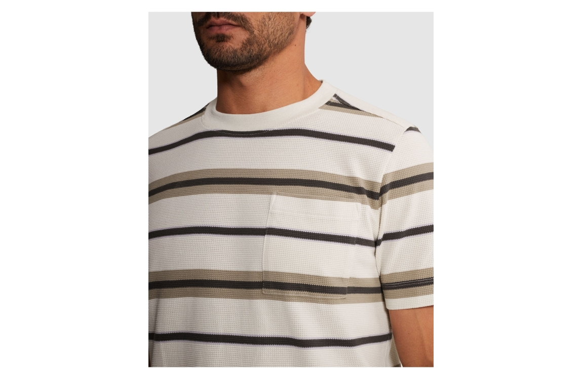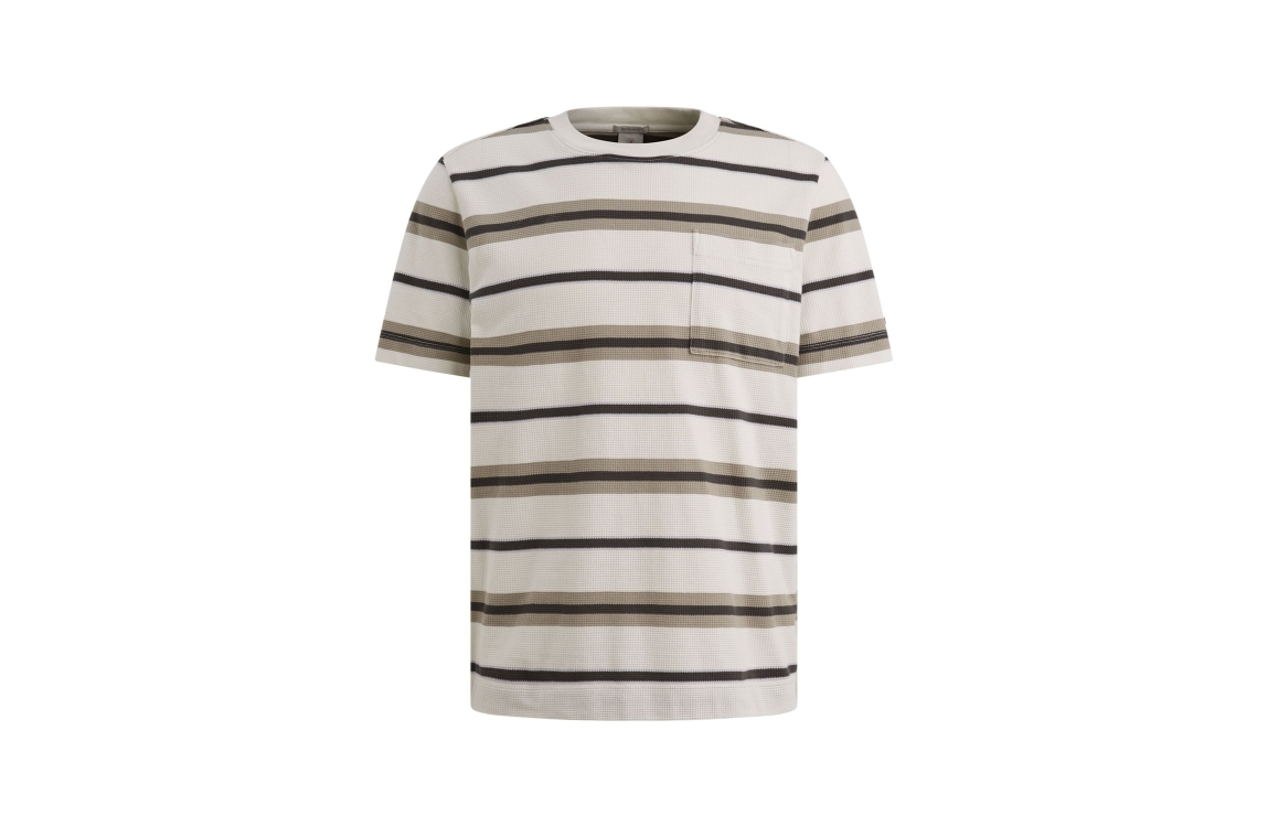 Cast Iron T-Shirt CTSS2602508. Dit regular fit model heeft een ronde hals en korte mouwen. Dit grijs gestreepte T-Shirt van Cast Iron is uitgevoerd met een borstzakje en gemaakt van zacht gebreid materiaal.