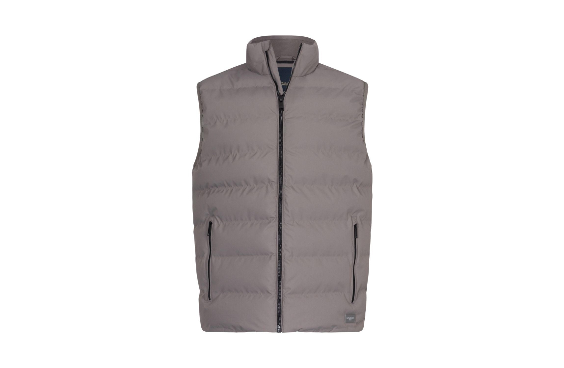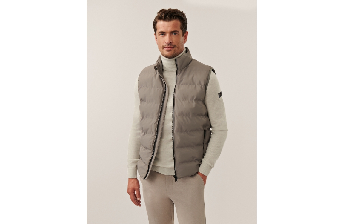 Cavallaro Cesario Bodywarmer 960000 Faded grey. Dit rechtvallende model is voorzien van een ronde hals met opstaande kraag en is mouwloos. Deze grijze bodywarmer van Cavallaro sluit door middel van een rits en is afgewerkt met twee zakken met rits.