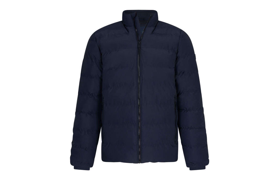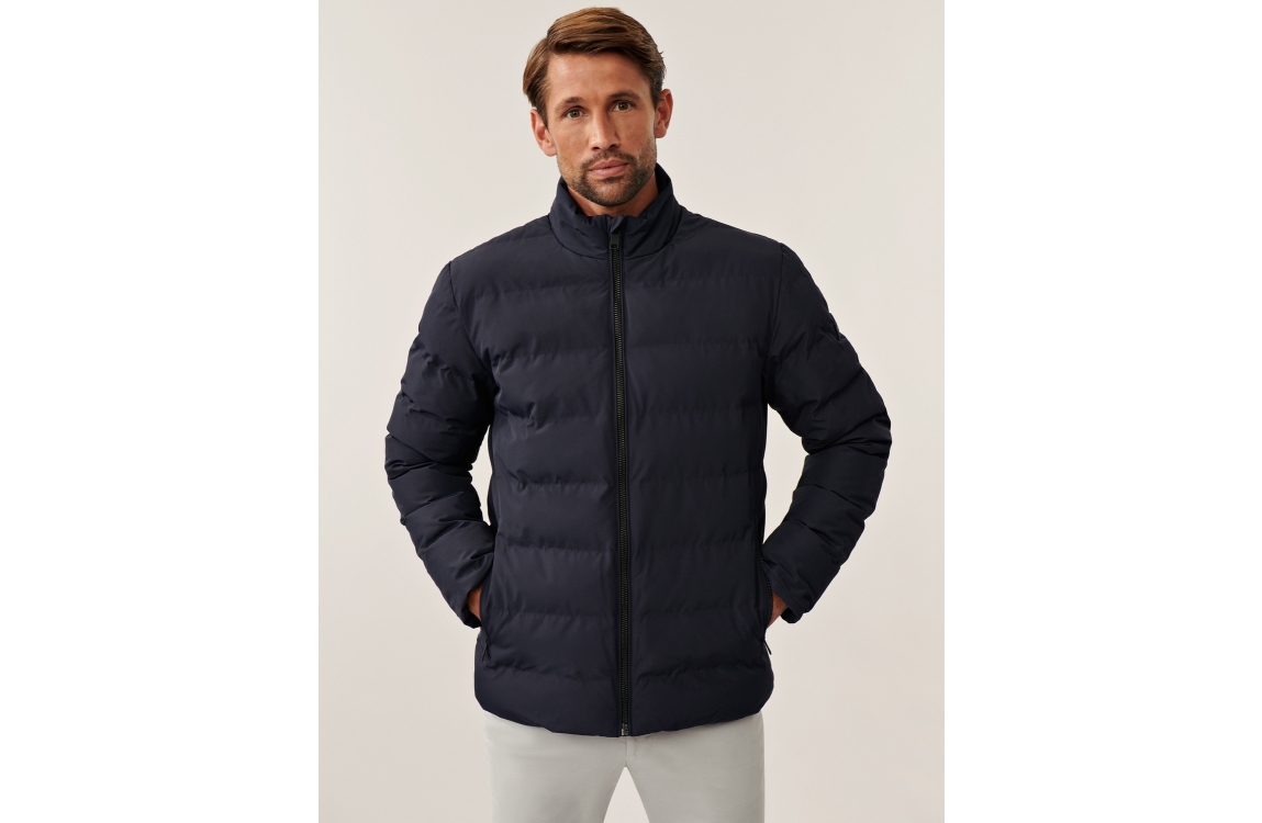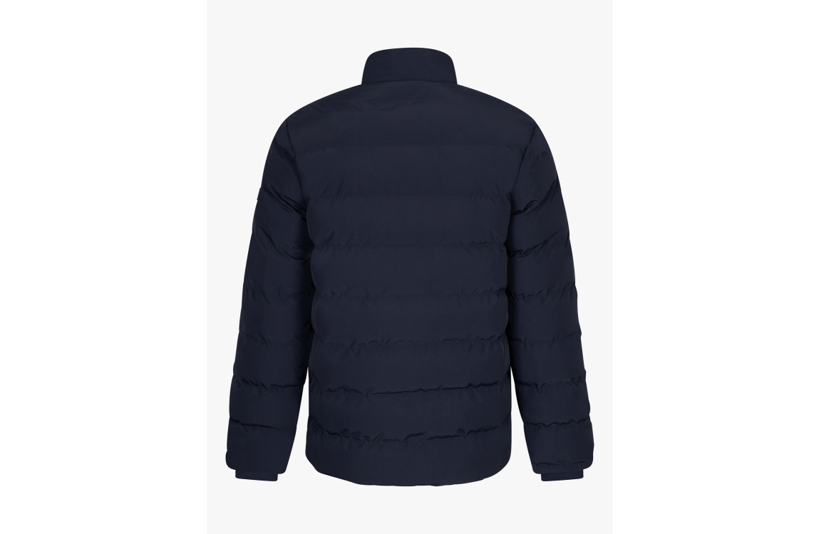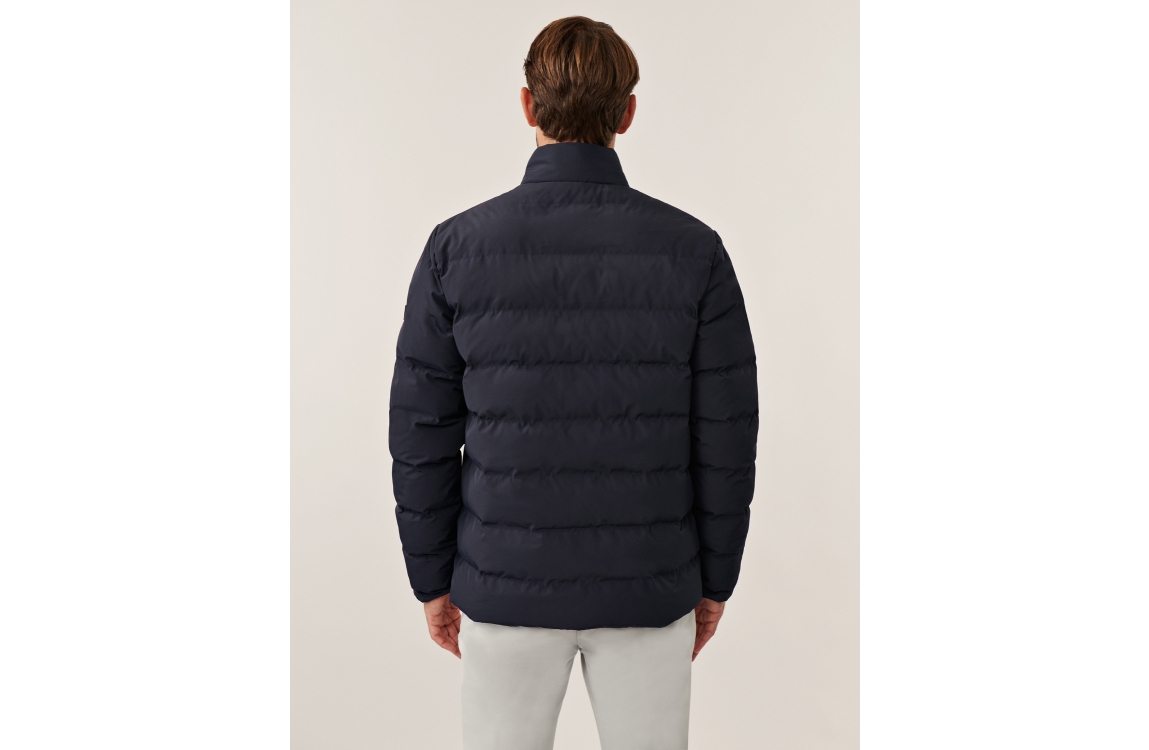 Cavallaro Cesario Jacket 699000 Dark blue. Dit rechtvallende model is voorzien van een ronde hals met opstaande kraag en heeft lange mouwen. Deze navy jas van Cavallaro sluit door middel van een rits en is afgewerkt met twee zakken met rits.