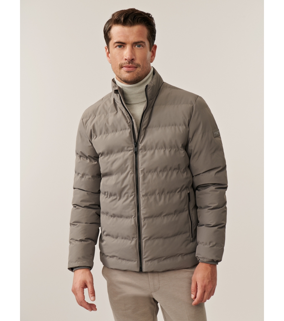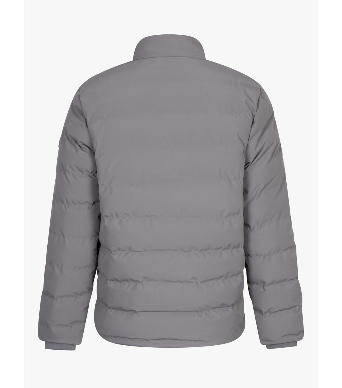 Cavallaro Cesario Jacket 960000 Faded grey. Dit rechtvallende model is voorzien van een ronde hals met opstaande kraag en heeft lange mouwen. Deze grijze jas van Cavallaro sluit door middel van een rits en is afgewerkt met twee zakken met rits.