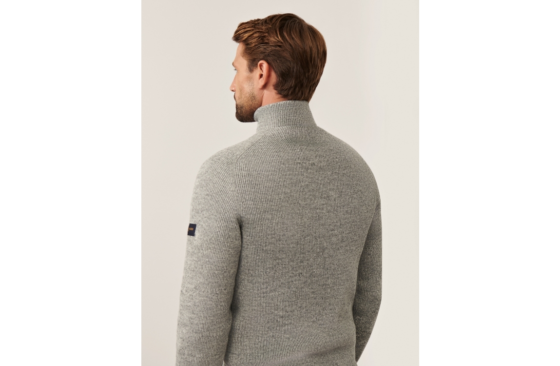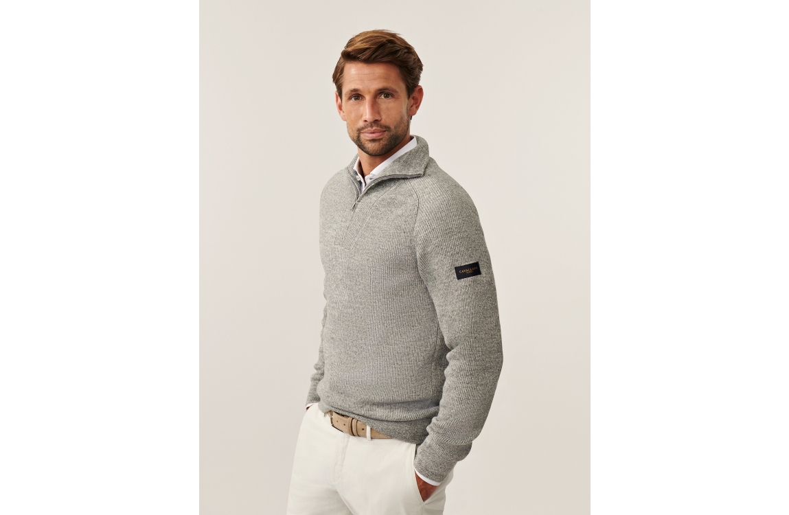 Cavallaro Corsico Melange half zip pullover. Dit slim fit model heeft lange mouwen en een hoge kraag. Deze grijze pullover van Cavallaro sluit door een half zip rits, heeft een gewoven structuur en is afgewerkt met rib boorden en heeft een merk embleem op de mouw.