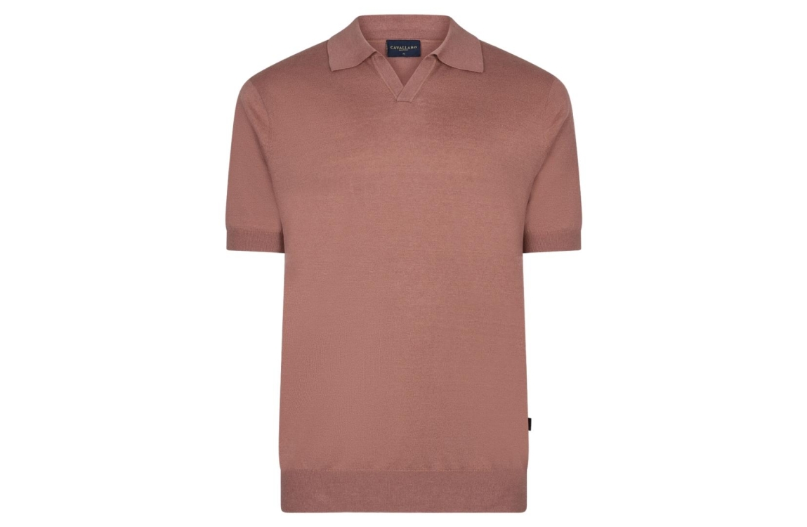 Cavallaro Erlino Polo 116261033. Dit regular fit model heeft een openstaande kraag en korte mouwen. Deze oudroze polo van Cavallaro is afgewerkt met elastische boorden aan de onderzijde.