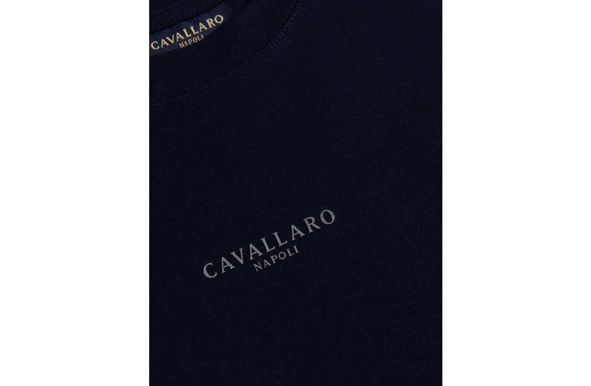 Cavallaro Luciano Tee 699000 Dark blue. Dit loose fit model heeft een ronde hals en korte mouwen. Deze donker blauwe T-shirt van Cavallaro is op de borst bewerkt met het merkembleem.