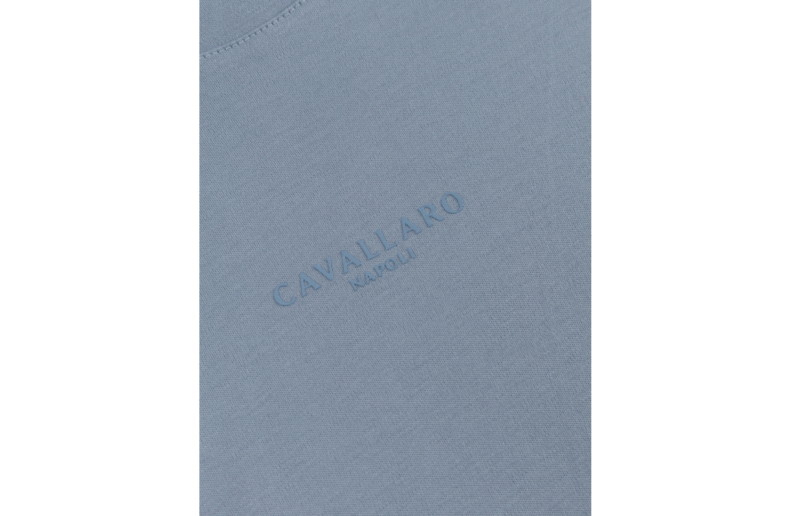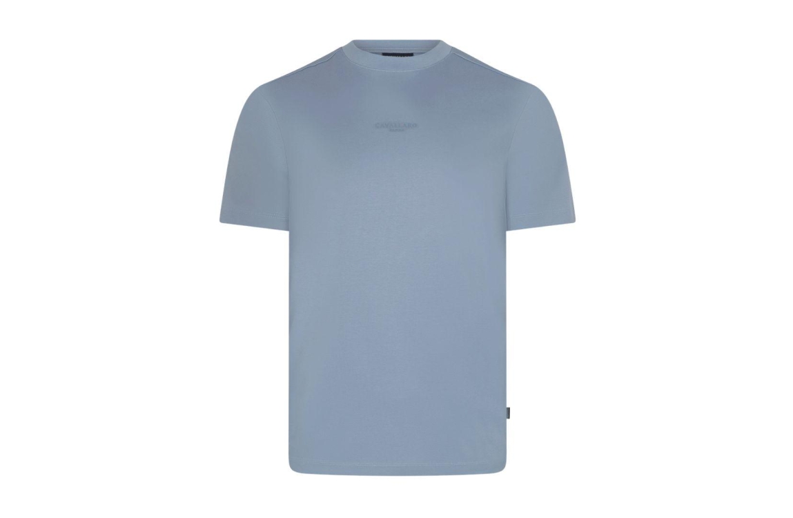 Cavallaro Luvati Tee 117261007. Dit rechtvallend model is voorzien van een ronde hals en heeft korte mouwen. Deze lichtblauwe T-shirt van Cavallaro is aan de voorzijde bewerkt met het logo.