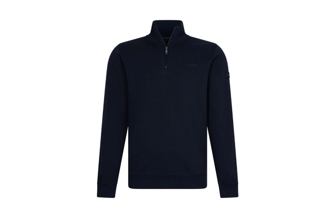 Cavallaro Marcio Half Zip Sweat. Dit regular fit model heeft een opstaande kraag die sluit door een rits en heeft lange mouwen. Deze donker blauwe sweet van Cavalloro is afgewerkt met boorden en een merkembleem op de arm en borst.
