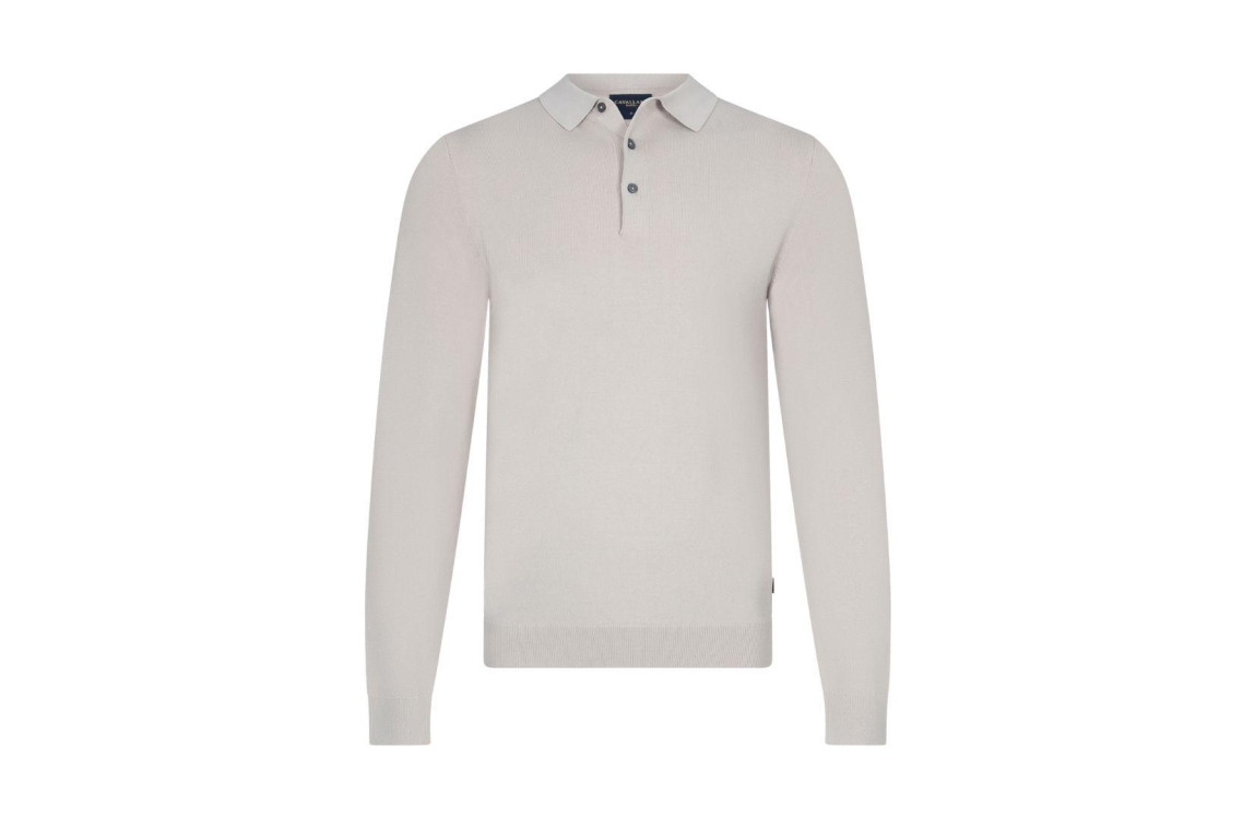 Cavallaro Milacio Long Sleeve Polo. Dit slim fit model beschikt over lange mouwen en heeft een kraag. Deze kit polo van Cavallaro is te sluiten met knopen, heeft kleine boordjes aan de mouwen en aan de onderkant.