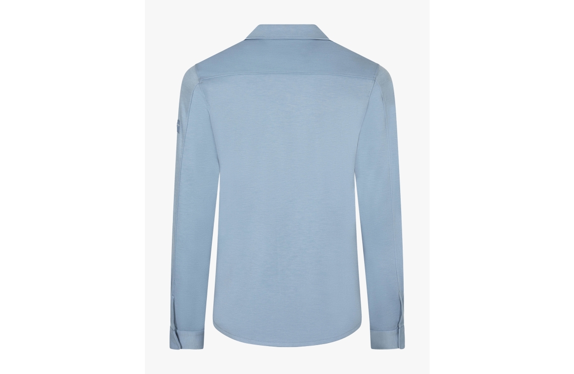 Cavallaro overshirt Zaverio 123261014. Dit rechtvallende model heeft een kraag en lange mouwen. Dit lichtblauwe overshirt van Cavallaro sluit aan de voorzijde door middel van een ritssluiting en is voorzien van twee klepzakken. Het model is op de linkermouw gedetailleerd met het merkembleem.