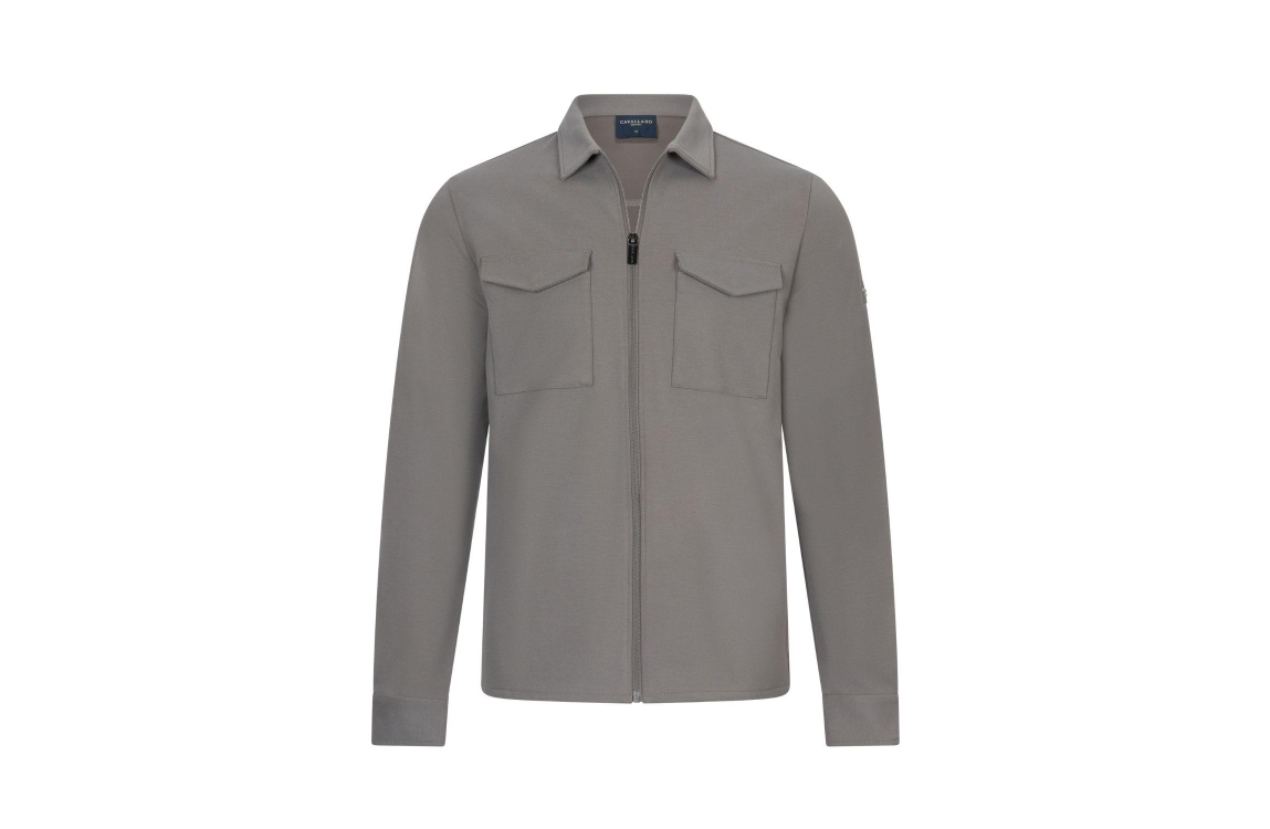 Cavallaro Zerino Overshirt. Dit rechtvallende model heeft een kraag en lange mouwen. Dit grijze overshirt van Cavallaro sluit door middel van een rits en is voorzien van een twee steekzakken op het voorpand.