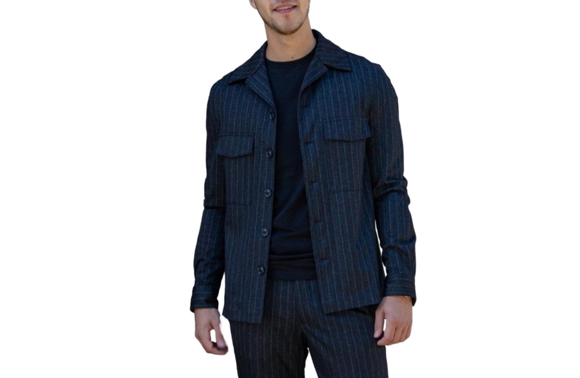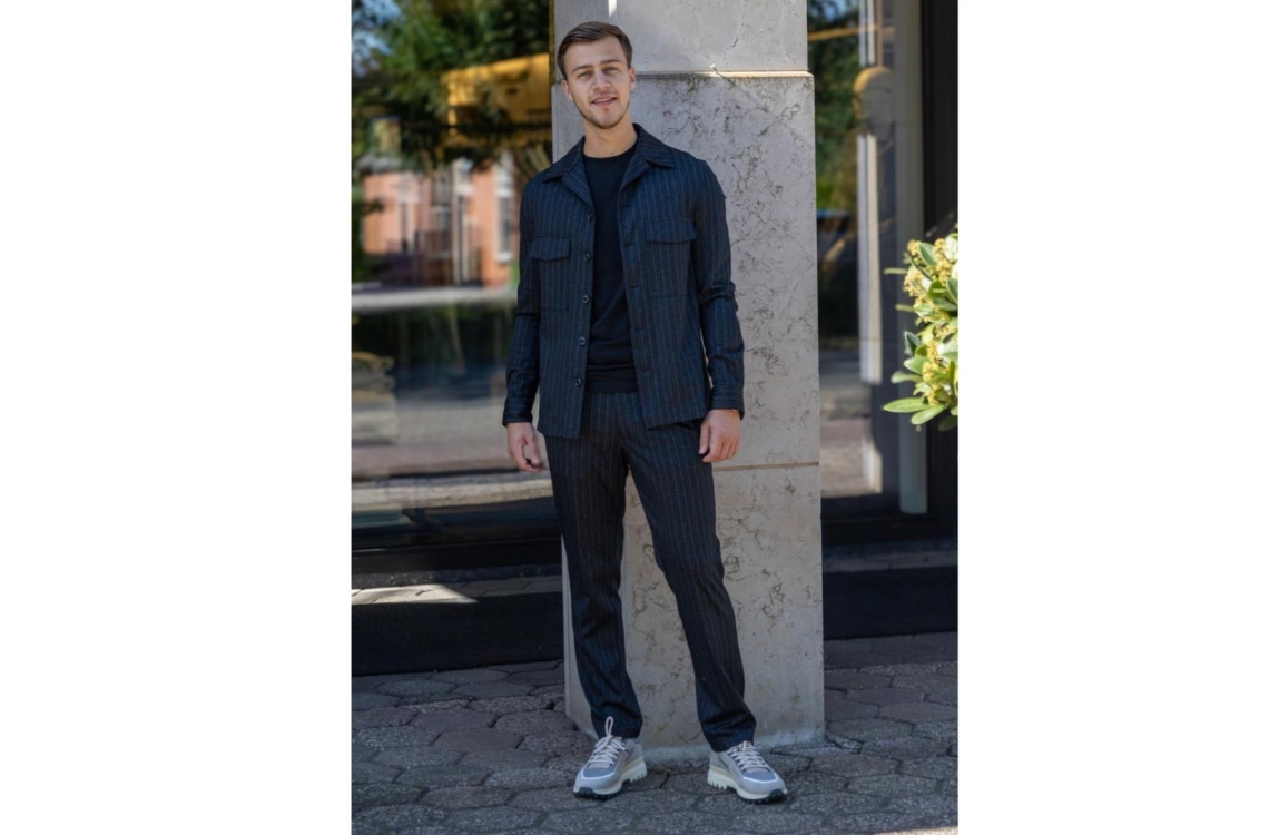 CG-Club of gents Constantin 52.252J2 / 225960 jack. Dit rechtvallende model heeft een kraag, lange mouwen en sluit door middel van knopen. Dit grijs/blauw gestreepte jack van CG-Club of gents is voorzien van klepzakken op het voorpand en afgewerkt met knopen aan de onderzijde van de mouw.