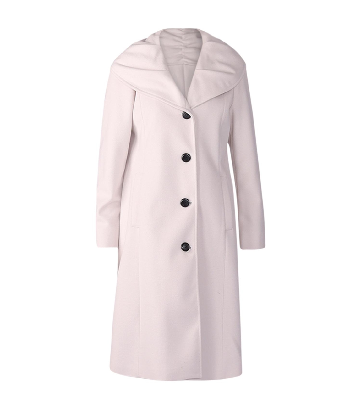 Civas jas Cornice 097. Dit rechtvallende model heeft een reverskraag en lange mouwen. Deze off-white jas van Civas sluit aan de voorzijde door middel van knopen en is voorzien van twee schuine steekzakken.