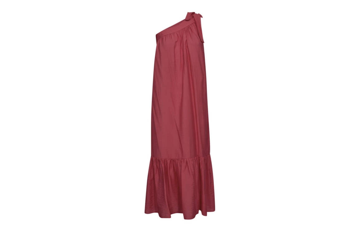 Co Couture jurk Callum. Dit wijdvallende model is voorzien van een schuine hals en is mouwloos. Deze roze jurk van Co Couture sluit door middel van een strik op de schouder en is afgewerkt met twee steekzakken. Dit model heeft een geplooide onderzijde.