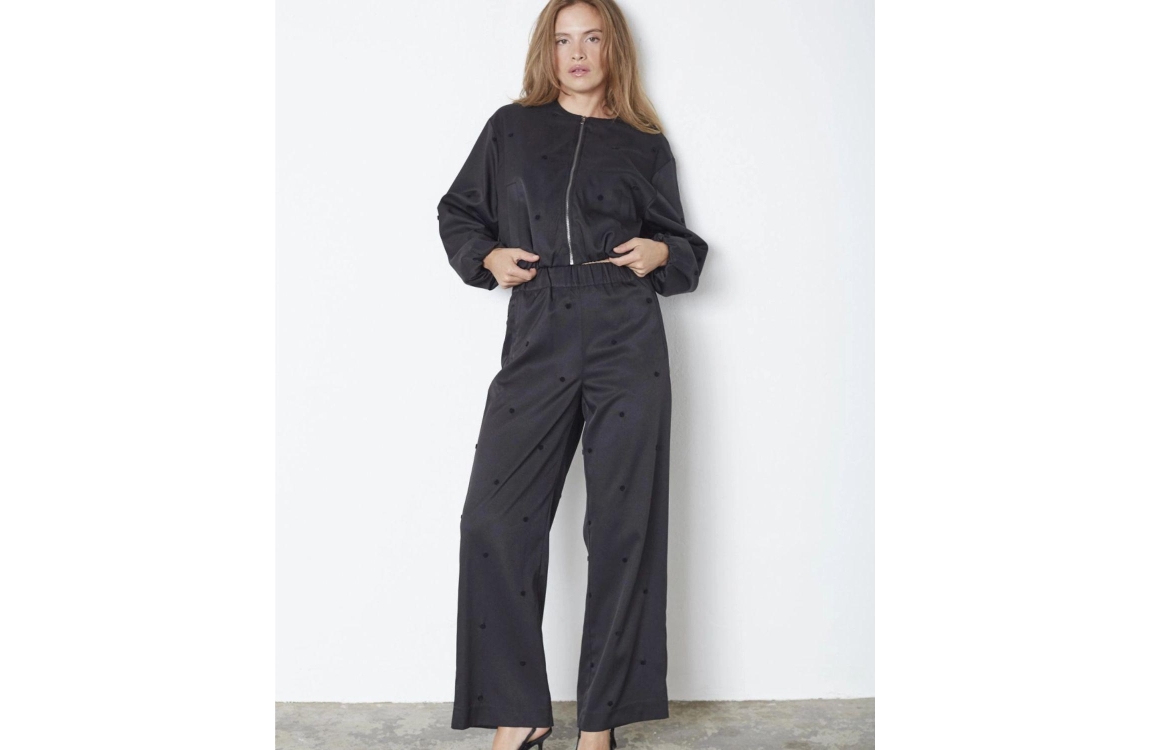 Co Couture CloverCC dot ll pants 96 Black. Dit rechtvallende model sluit aan de bovenzijde door middel van een elastische band. Deze zwarte broek van Co' Couture is voorzien van schuine steekzakken. Dit model is bewerkt met stippen.